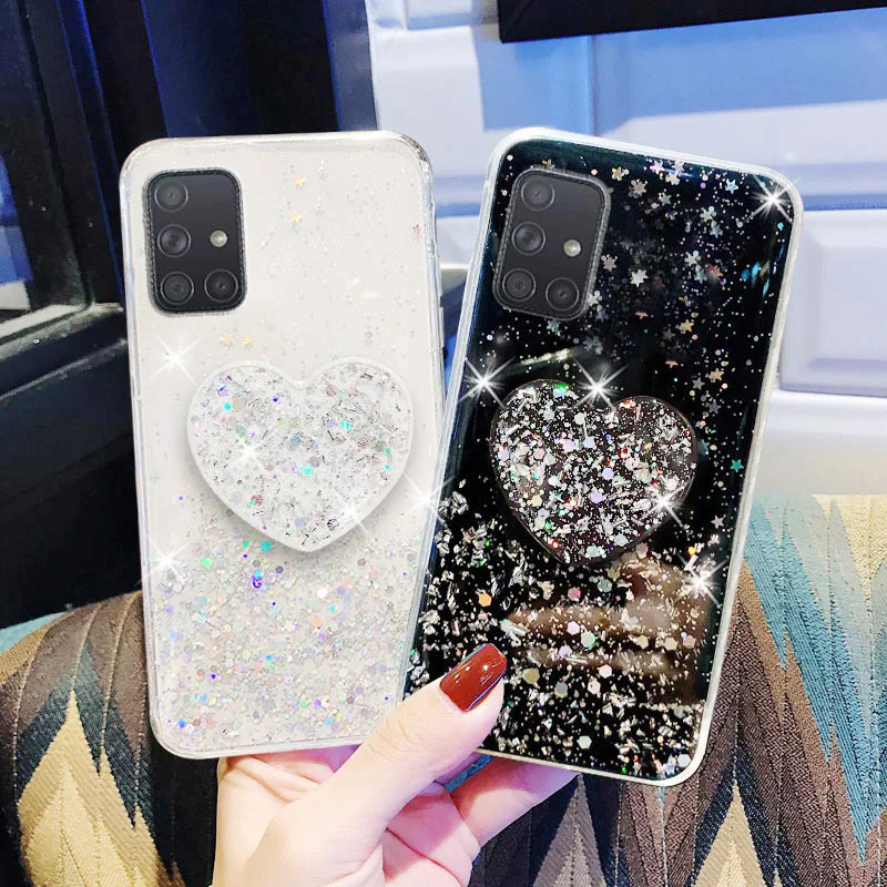 С сияющими блестками сердце держатель чехол для OPPO Realme 7 X7 6 Pro A53 A15 A9 A5 2020 найти X2 чехол s Realme 5 X50 XT X2 C15 C12 C11 крышка