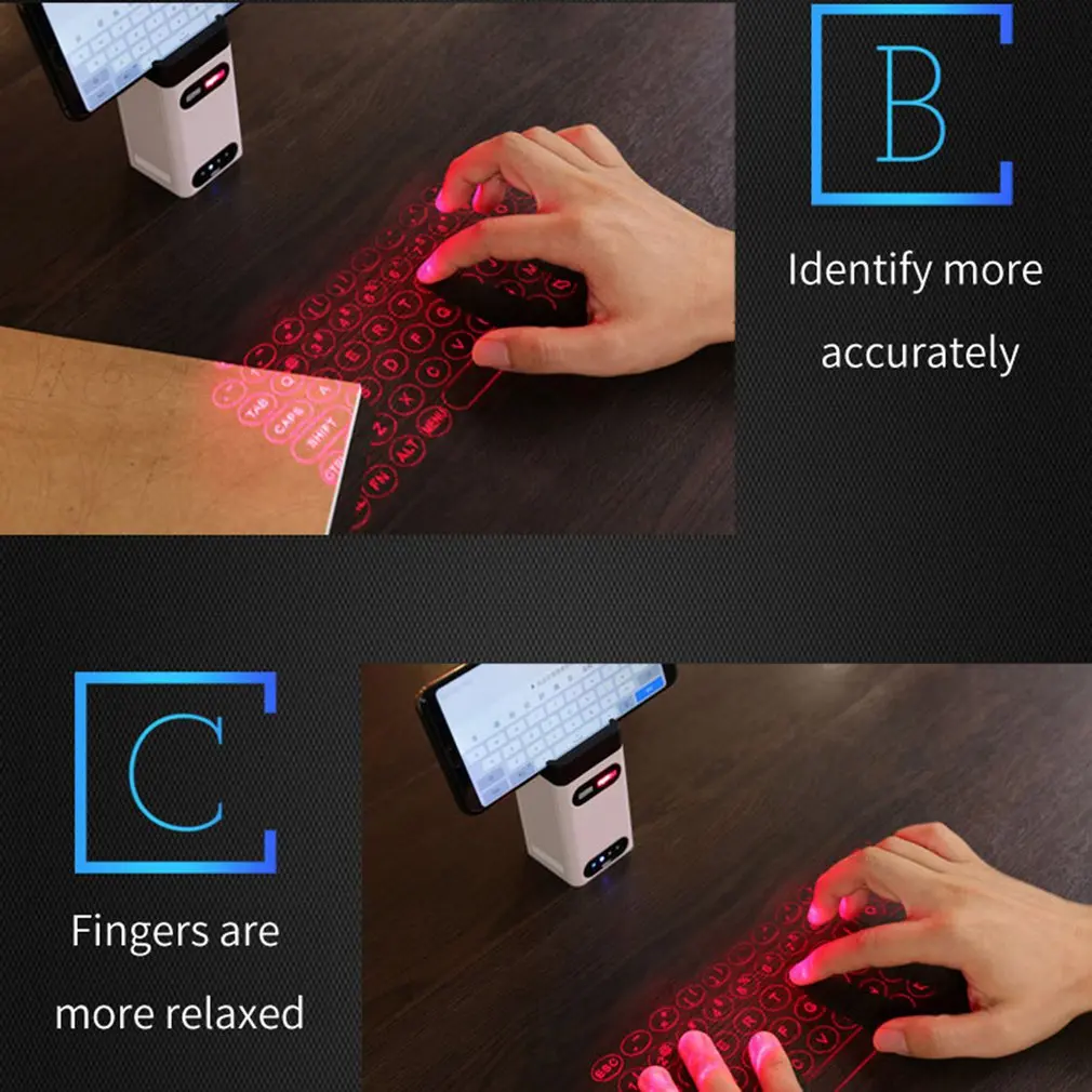 Особенности:100% новый и высокое качество!Раскладка клавиатуры QWERTY на английском языке.Действительно портативный дизайн: идеально подходит для активного отдыха.Полноразмерные клавиши и быстрые клавиши для удобства работы.Высокая прочность (без движущегося компонента внутри).Встроенный литий-ионный полимерный аккумулятор для подвижности и удобстваСовместимость с новейшими операционными системами: для Windows XP и более поздних версий, для Windows Phone 7 и более поздних версий, для iOS4 и более поздних версий, для Android 2,1 и более поздних версий, для Mac OS X и более поздних версий. Спецификация:Макет клавиатуры проектора. Шаг 19 ммСветильник источник света: красный лазерРазмер клавиатуры (мыши): прибл. Ширина: 240 мм, Высота: 100 ммРасположение клавиатуры (мыши): прибл. 80 мм от нижней части устройстваПоверхность проекта: неотражающая, непрозрачная плоская поверхностьСкорость распознавания: около 350 символов в минутуРабочая поверхность: любая твердая плоская поверхностьВнешний источник питания: Питание USB/менее 5 в 500 мАБатарея & Ёмкость: литий-ионный полимерный Дополнительный внешний аккумулятор, Батарея, 700 мА · ч (MA Д х Ш х В) @ 3,7 VВремя работы батареи: прибл. 150 минВремя зарядки аккумулятора: прибл. 90 минBluetooth(bm20730): V3.0, HID профиль Ver 1,0Частотный диапазон: 2402-2480 МГцКанал: 79Модуляция: GFSKРазмер изделия (мм): 78 мм x 40 мм x 20 ммВес изделия (г): 60 гЦвета: серебристый + черный Посылка включает в себя:1 x лазерная проекционная клавиатура1 х USB кабель1 х Руководство пользователя1 x Руководство по быстрому запуску