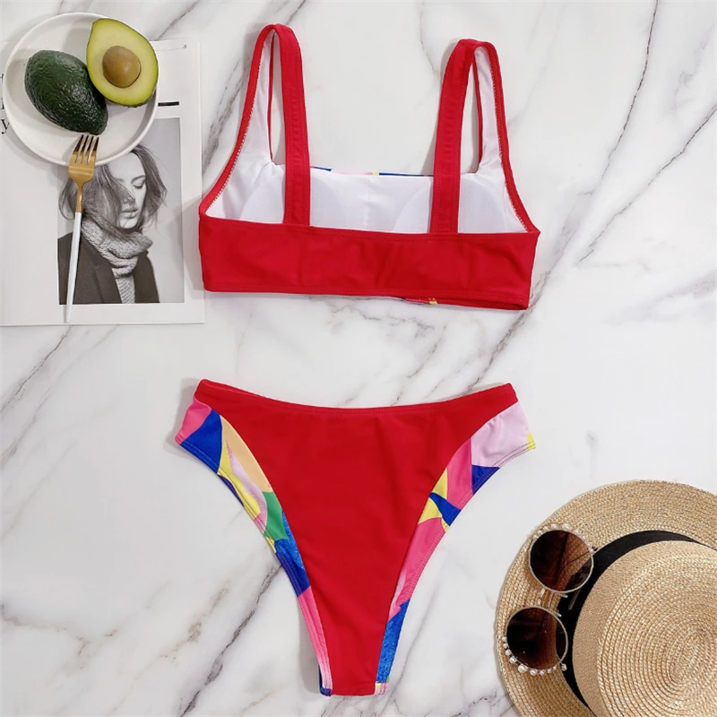 Сексуальный купальник-бандо GNIM, Женский комплект бикини с принтом в стиле пэчворк, лето 2021, купальник с высокой талией, женская пляжная одежда из 2 предметов, бикини, Новинка