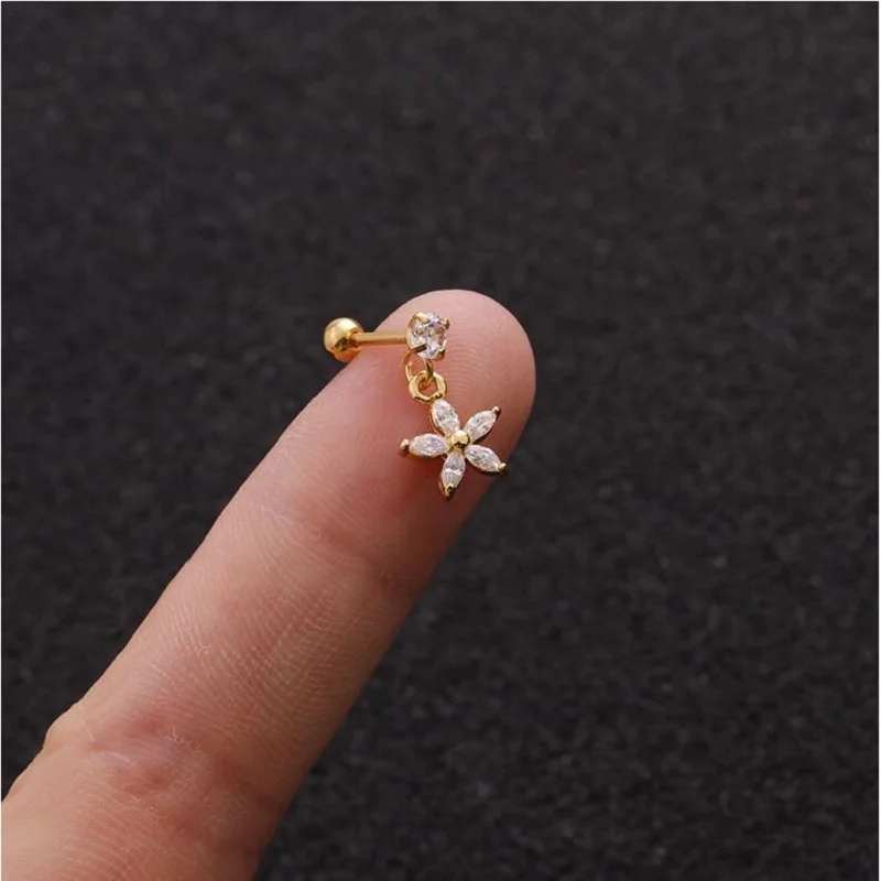 Серьга-гвоздик из нержавеющей стали с фианитом для пирсинга уха, 1 шт., хрящевая спираль, звезда, бабочка, луна, винт, задняя часть