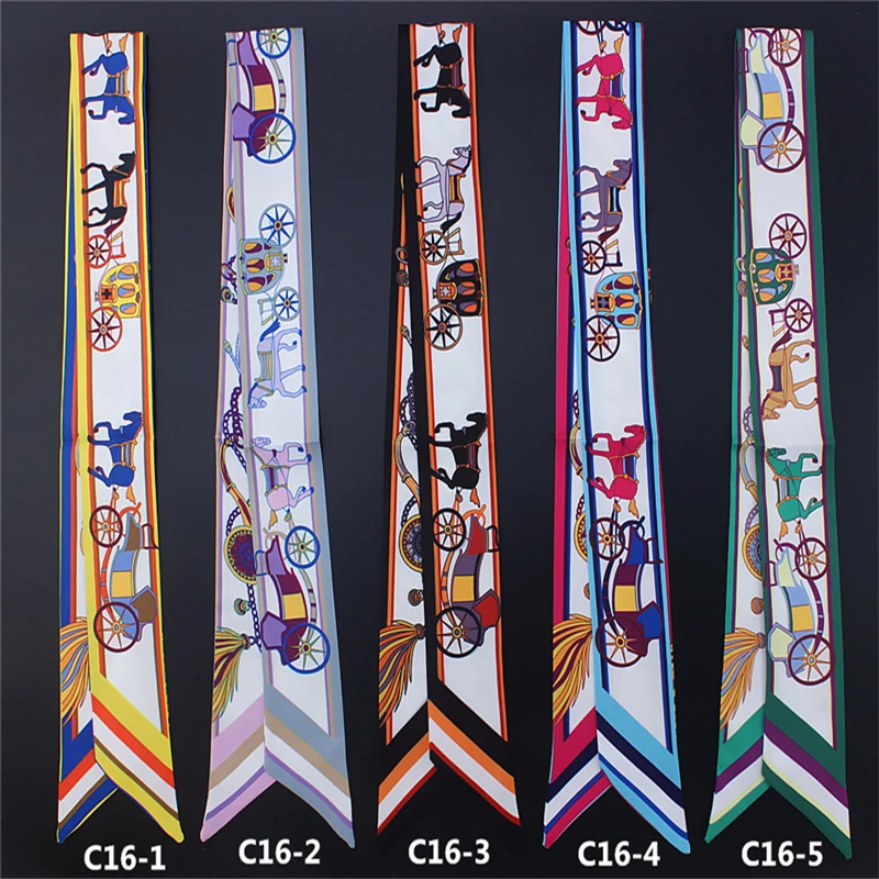 Модный Шелковый шарф с принтом в виде каретки, фирменные вещи для женщин, саржа сатин, шарф и шаль, тонкая Длинная лента с завязками для сумок MQ12