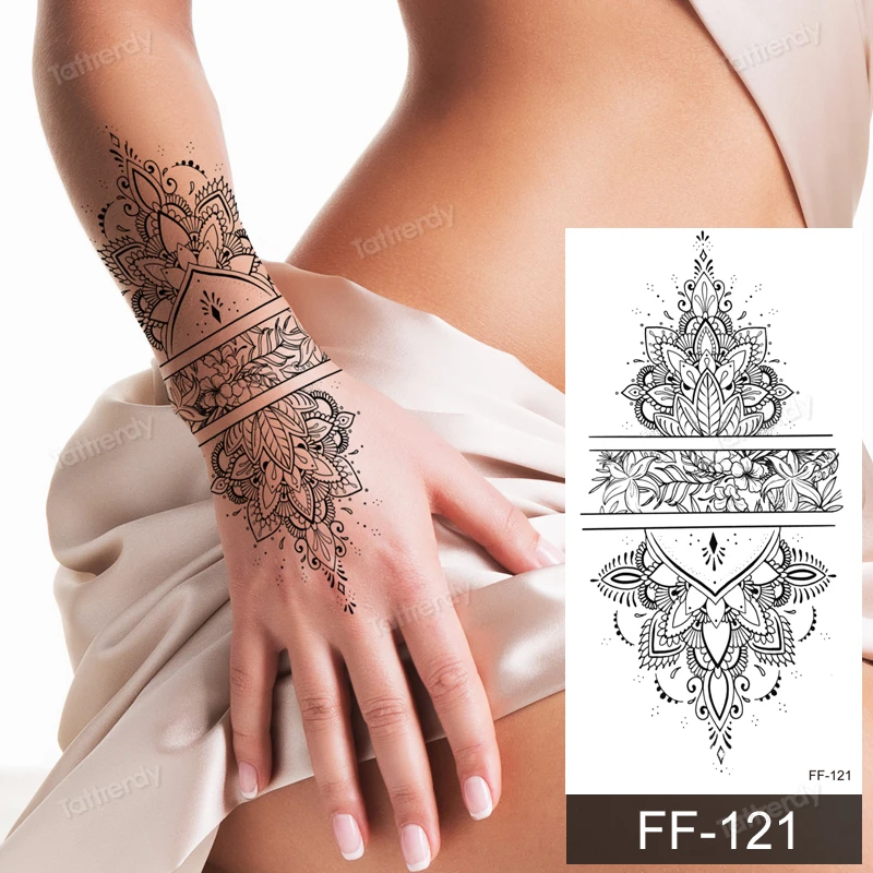 Черные кружевные Временные татуировки-наклейки для женщин, цветок лотоса, Женская татуировка, боди-арт, нижняя грудь, сексуальные татуировки для женщин и девочек