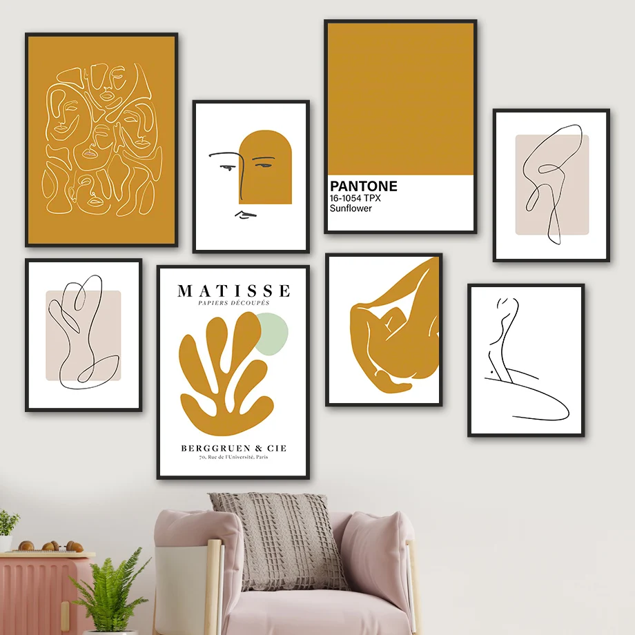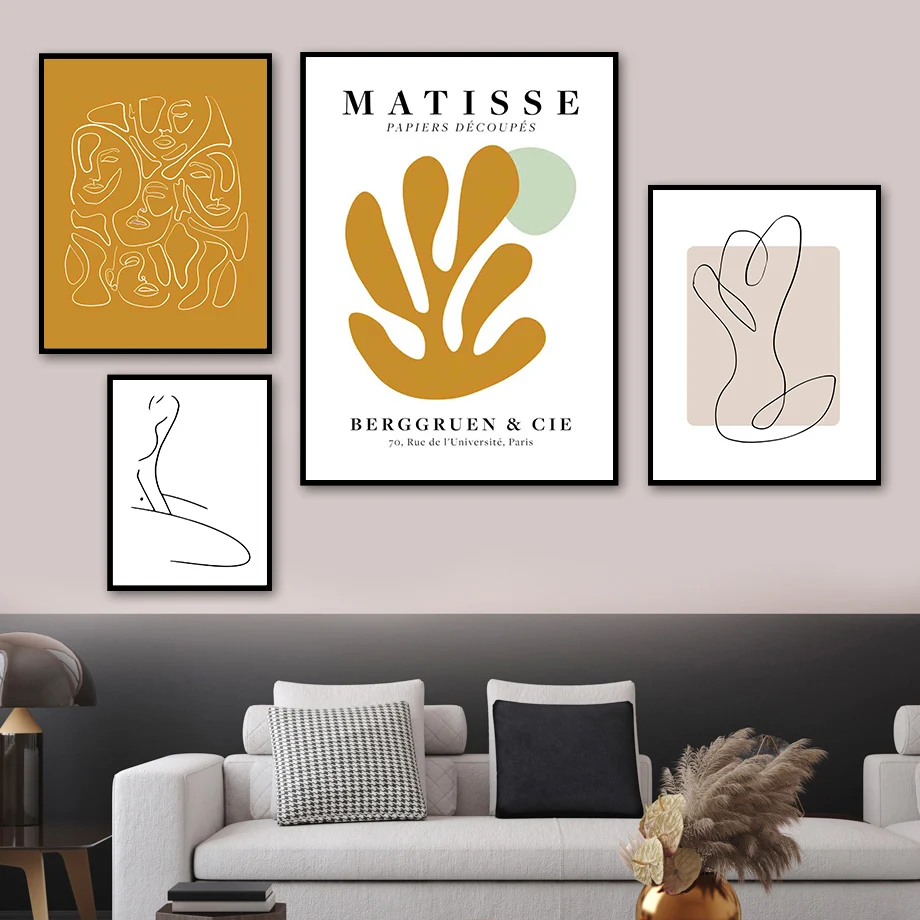 Абстрактный винтажный скандинавский постер Пикассо матиссе линия ли...