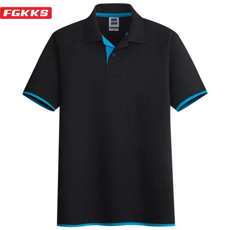 Мужская рубашка-поло FGKKS, однотонная деловая рубашка с коротким рукавом, с отложным воротником, лето 2021