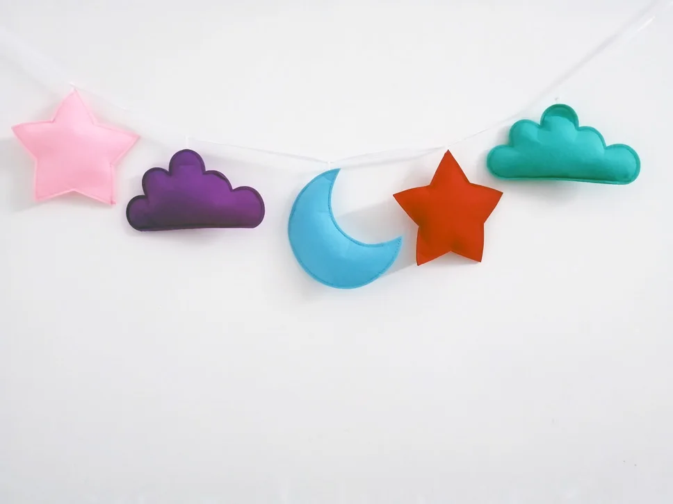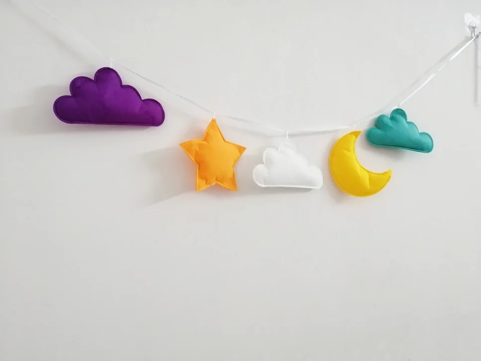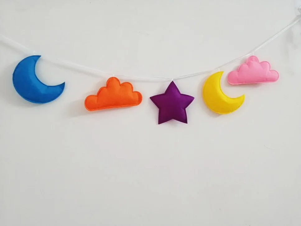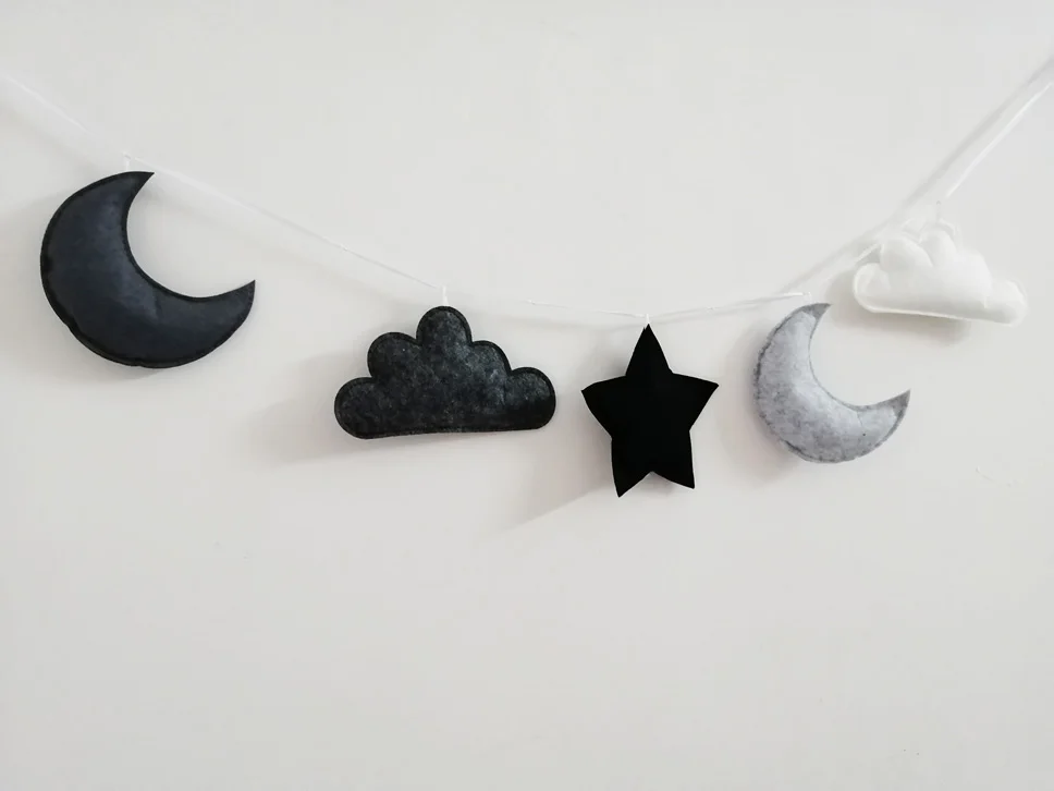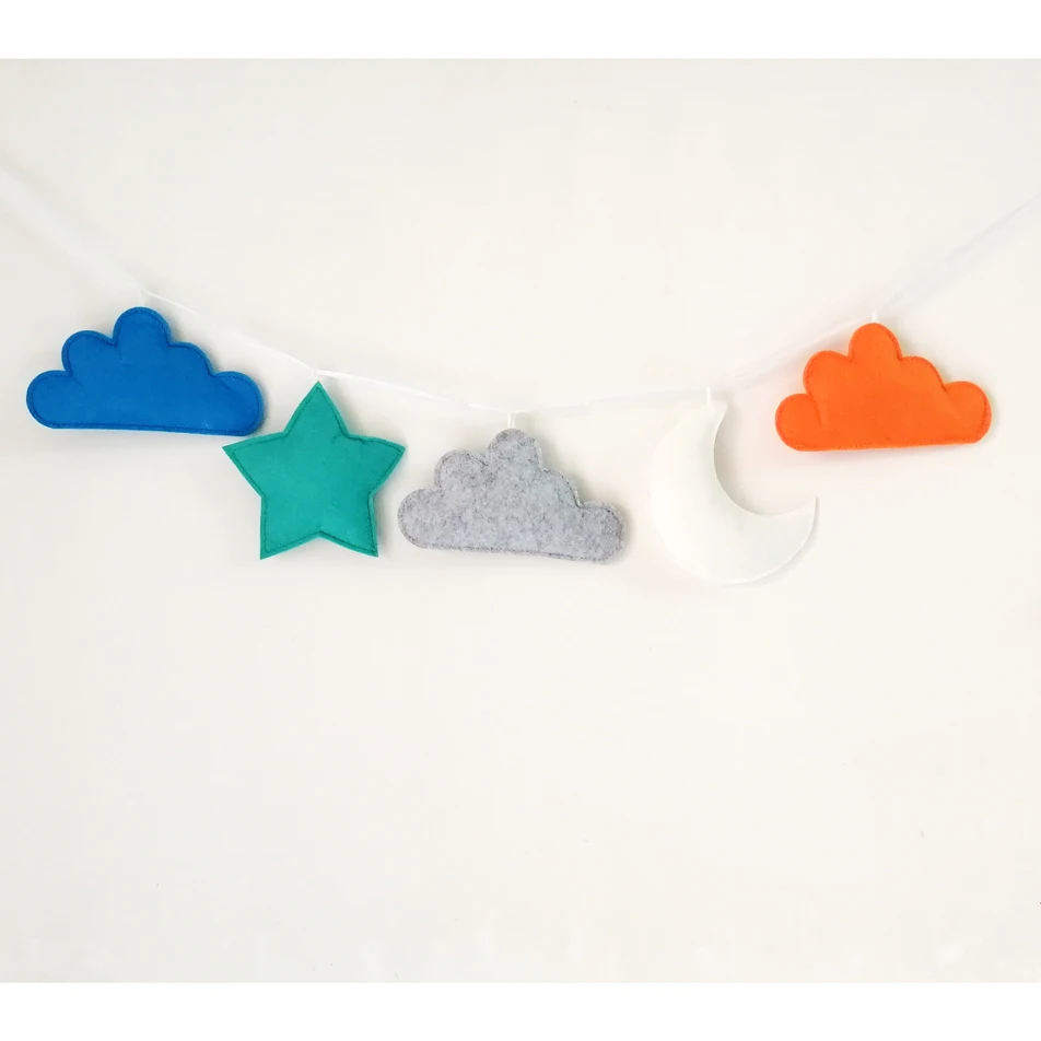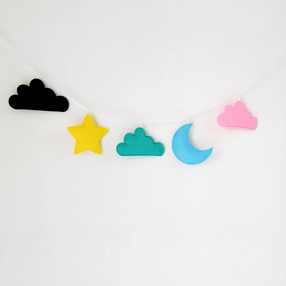 Скандинавская фетровая ткань, звездная луна, облако, гирлянда, банн...