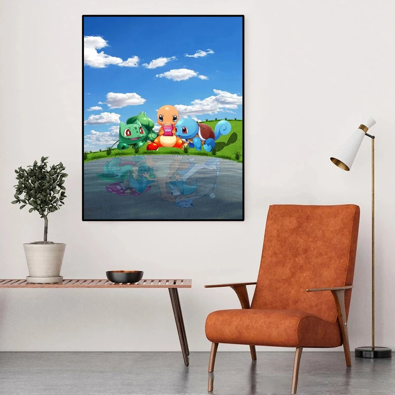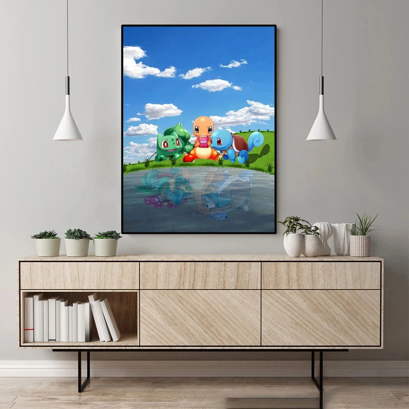 Современные Аниме Покемон играют вместе в игры HD художественные принты и плакаты напечатаны на холсте семейная гостиная декоративные картины