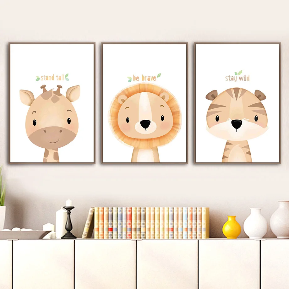 Настенная картина для детской комнаты, животные, лиса, олень, тигр,...