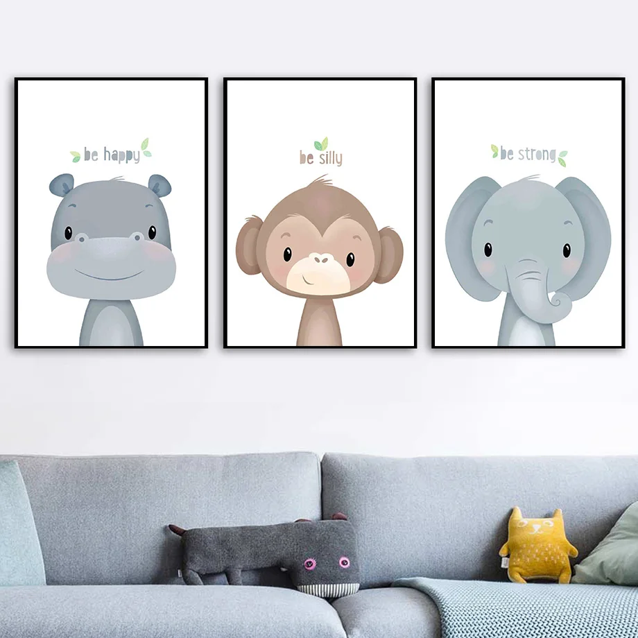 Настенная картина Зебра, слон, леопард, животные, клуб, детская ком...