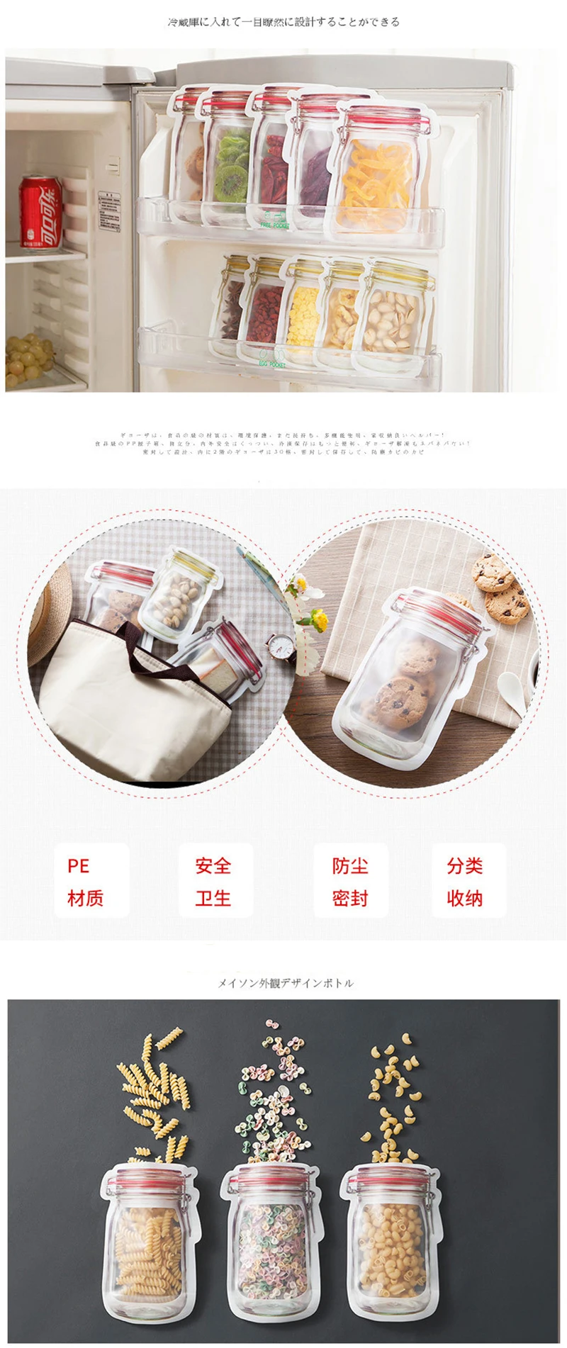 10 шт. Mason сумки банку бутылки мешок с застежкой-молнией многораз...