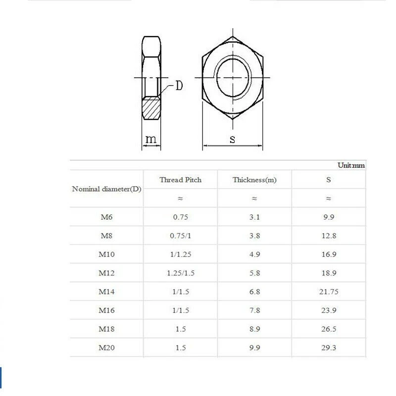 Шестигранные Гайки с мелкой резьбой, полутонкие гайки 304 A2 из нержавеющей стали M6 8 10 12 14 16 18 20