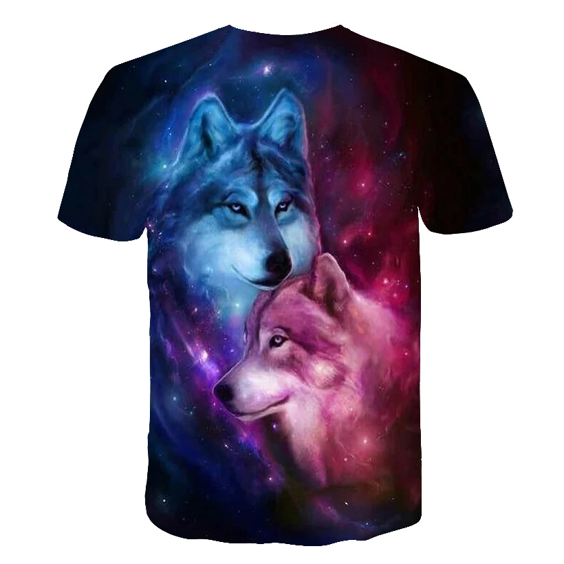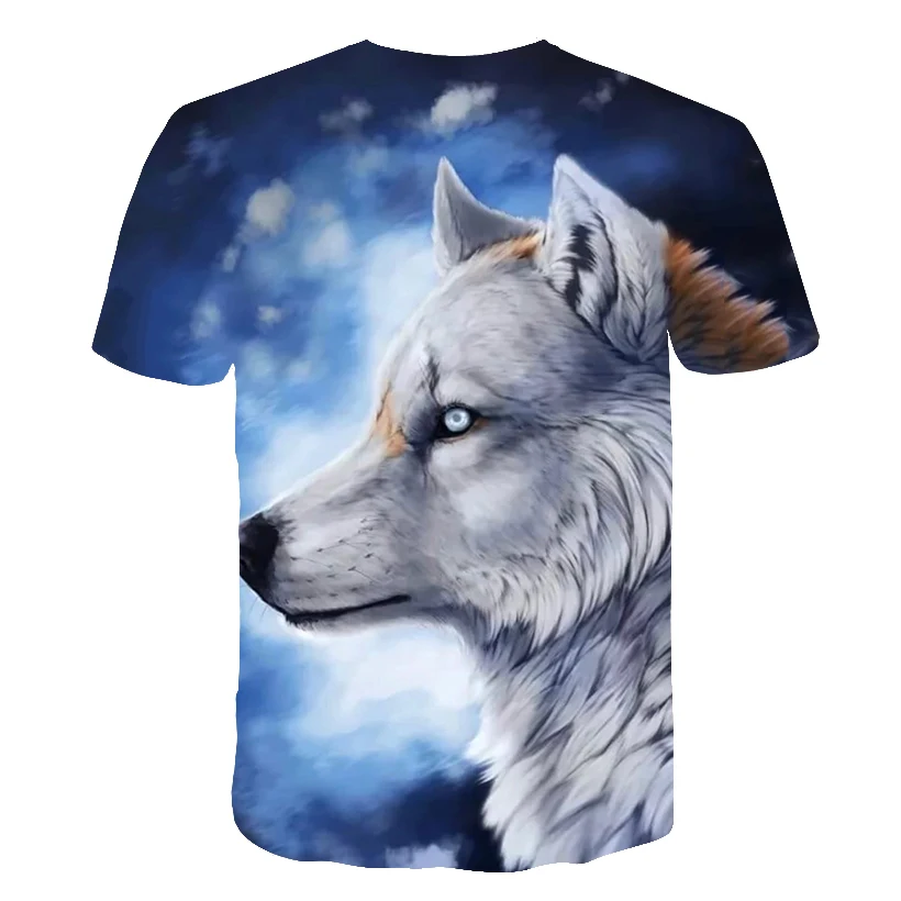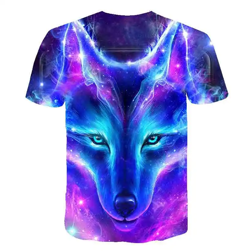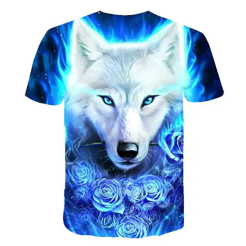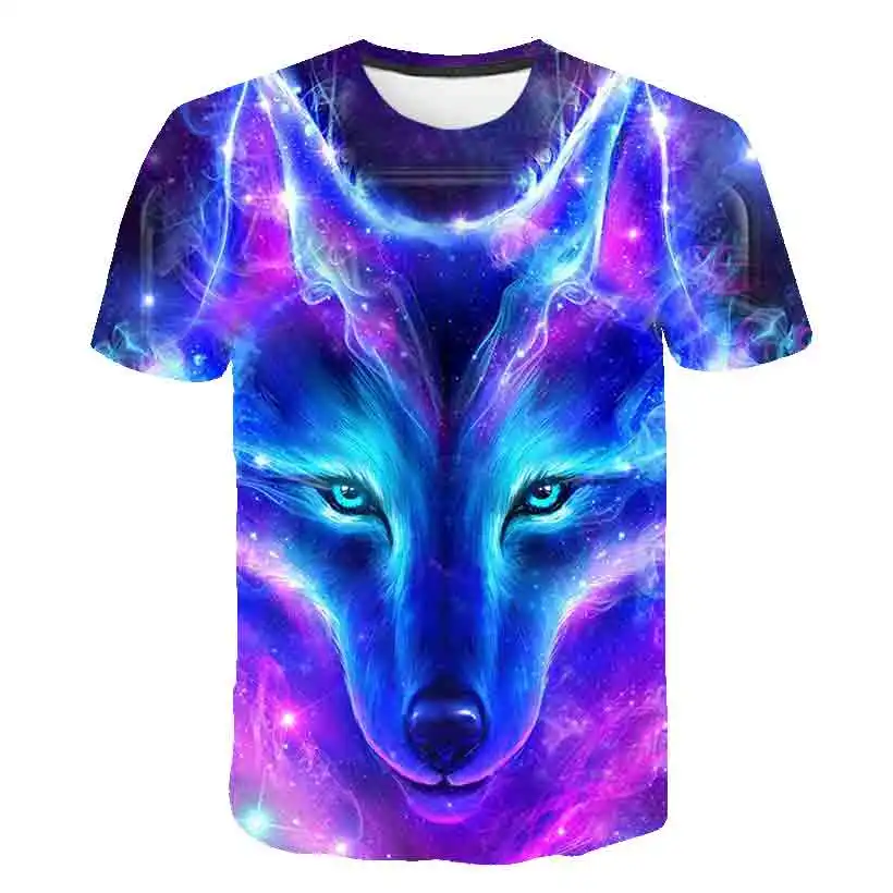 Футболки с изображением животных для мальчиков и девочек, Детская футболка с 3D-принтом волка, Детская летняя футболка с коротким рукавом, топы, повседневная одежда