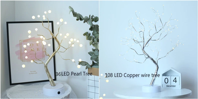 Светодиодный светильник из медной проволоки, ночник, сказочный светильник с деревом, украшение дома, ночник, USB батарейка для спальни, прикроватная настольная лампа