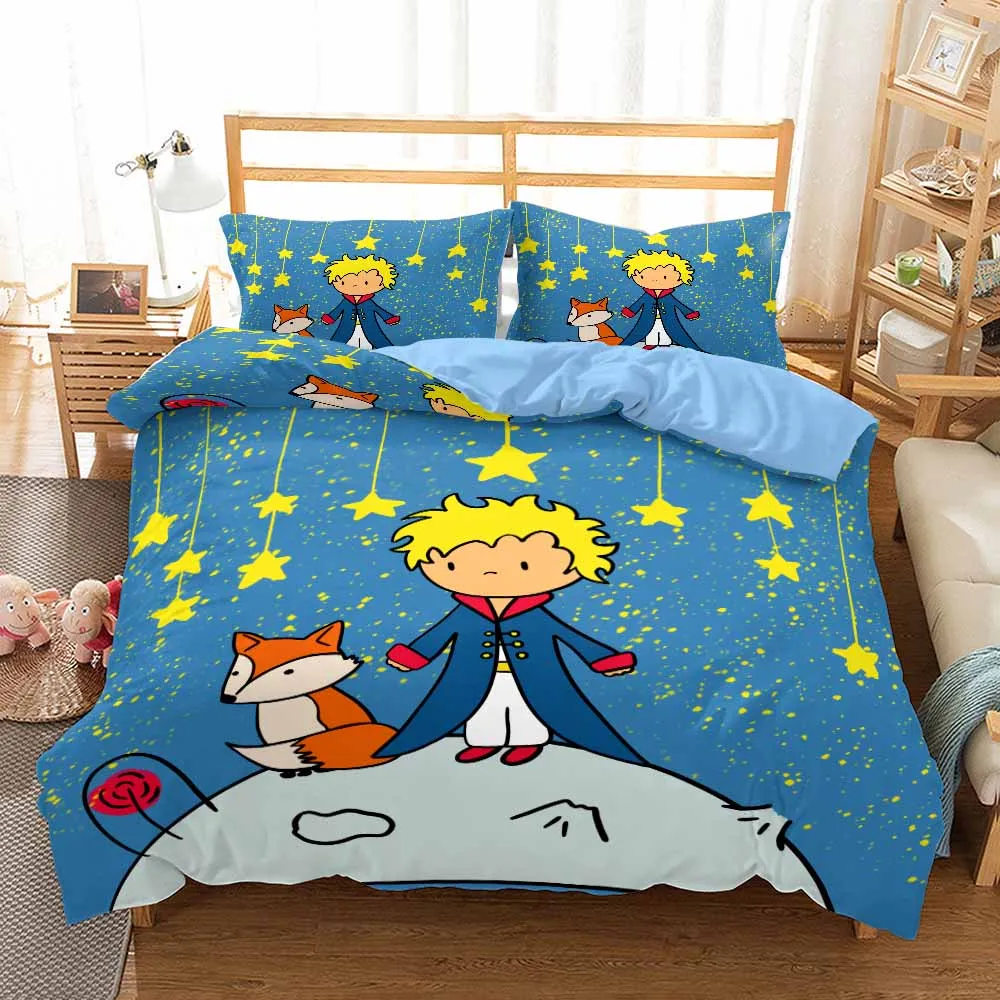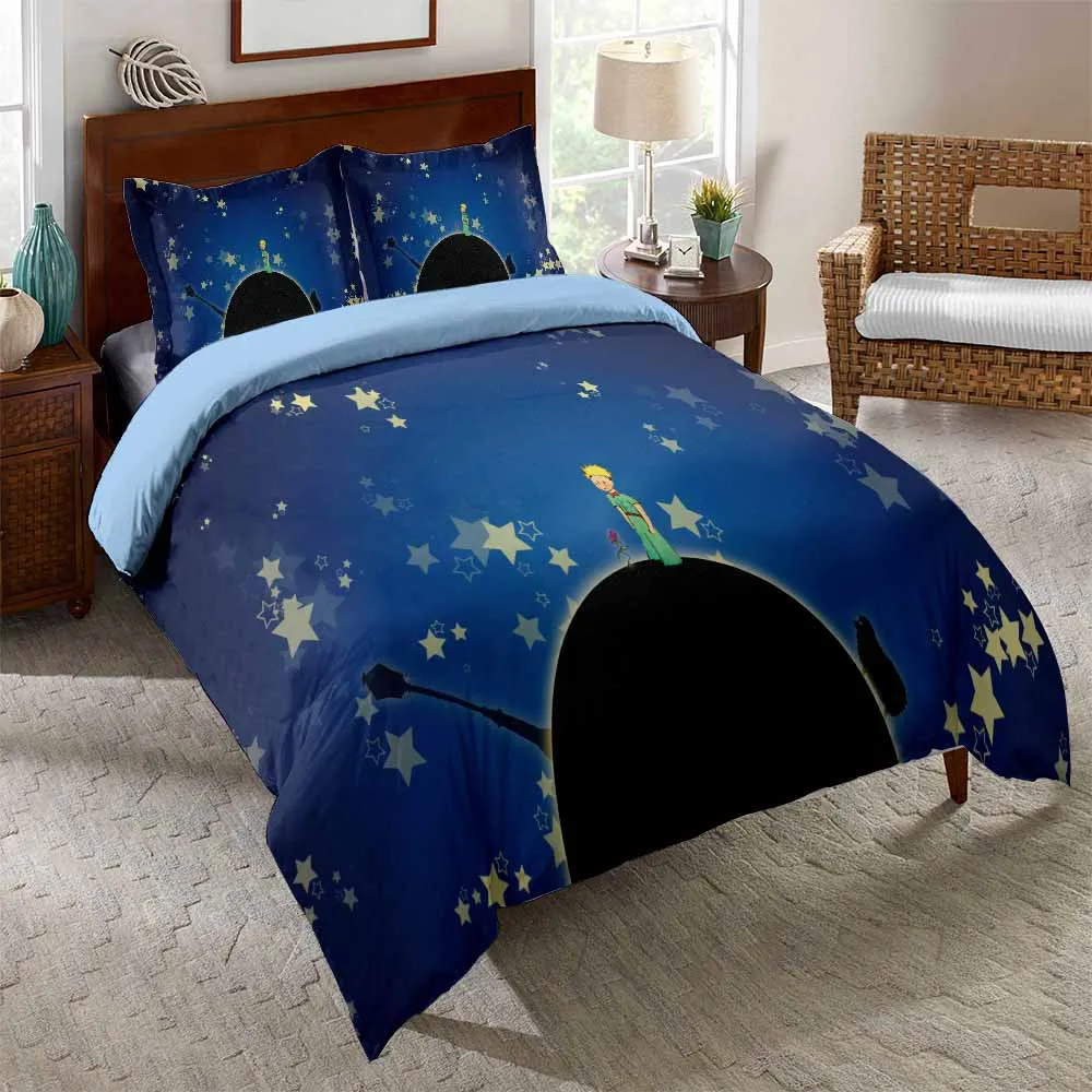 Детский комплект постельного белья с изображением Маленького принца, пододеяльник, наволочки, одеяло с изображением лисы, звезды, неба, голубое сказочное одеяло, одиночное и двойное одеяло