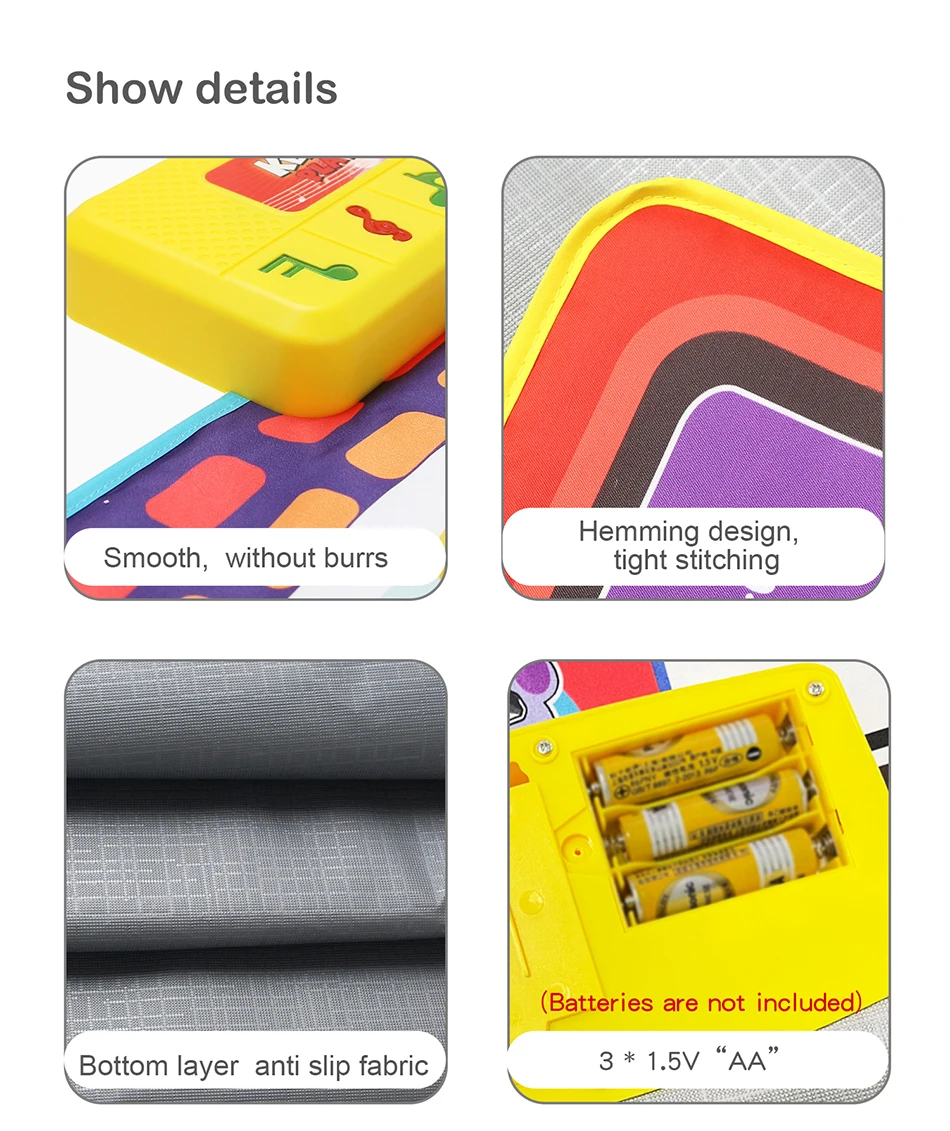 Хороший игровой коврик, детям очень понравился. Описанию соответствует. Работает от трёх батареек пальчиковых. Материал хороший громкость регулируется. Большое спасибо продавцу!