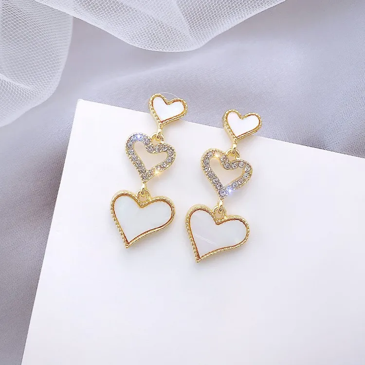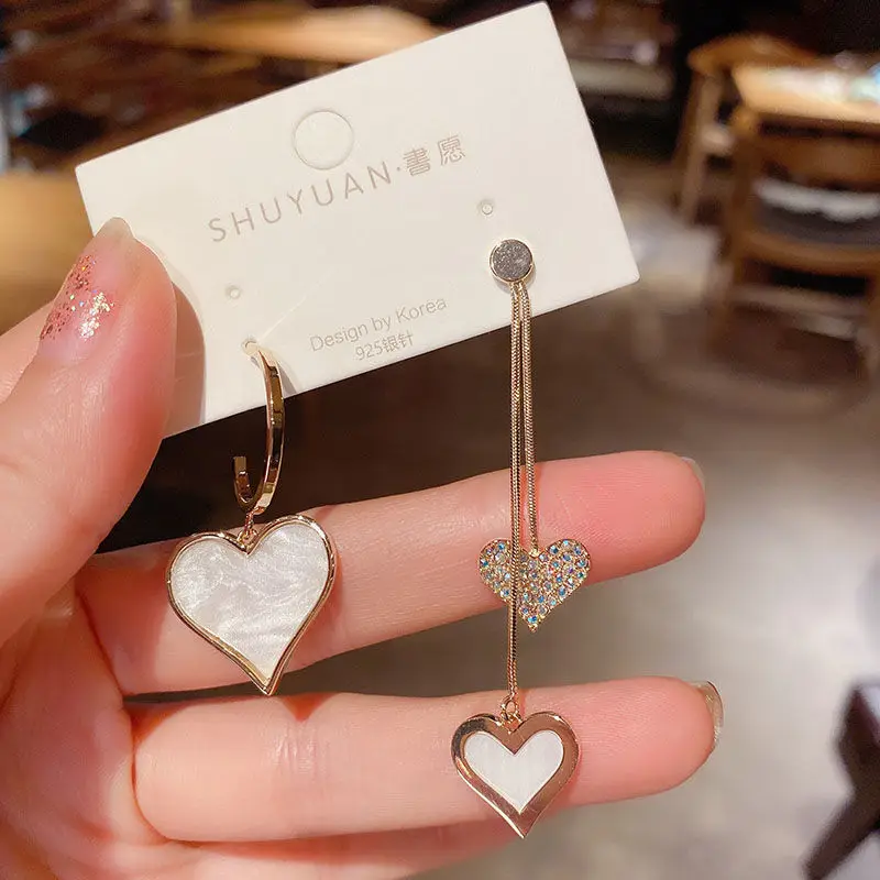 Корейские серьги Модные ювелирные изделия темпераментные Стразы ЛЮБОВЬ ассиметричные серьги в форме сердца для женщин оптовая продажа