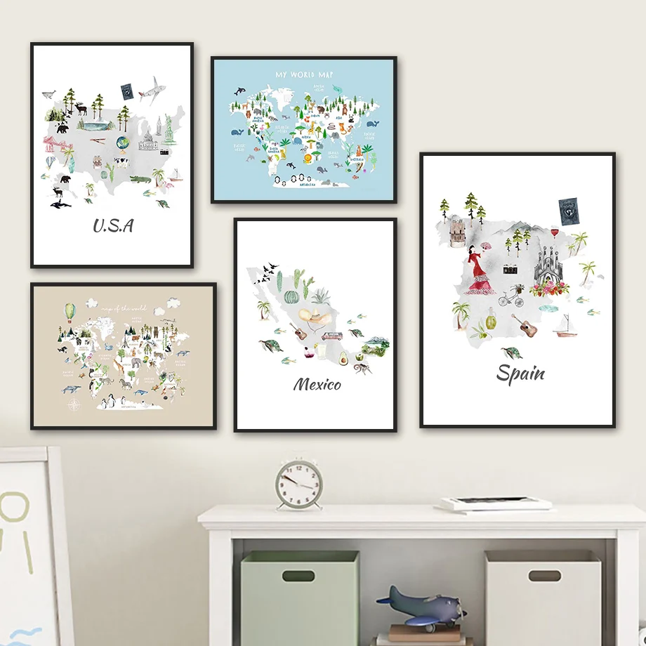 Милый жираф, львы, слон, Зебра, хорьк, бохо, детские настенные карт...