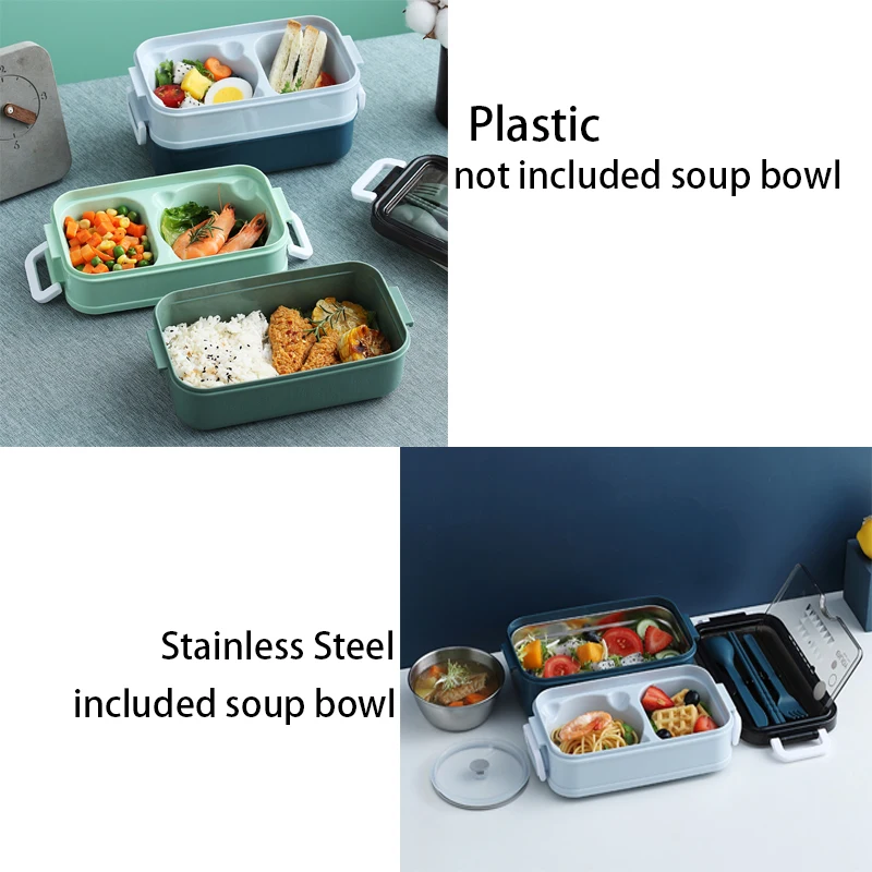 2 слоя Нержавеющаясталь Коробки для обедов бенто ланч бокс для студенческим пакетом Office Рабочий Microwae нагрева обеда контейнер Еда ящик для хранения