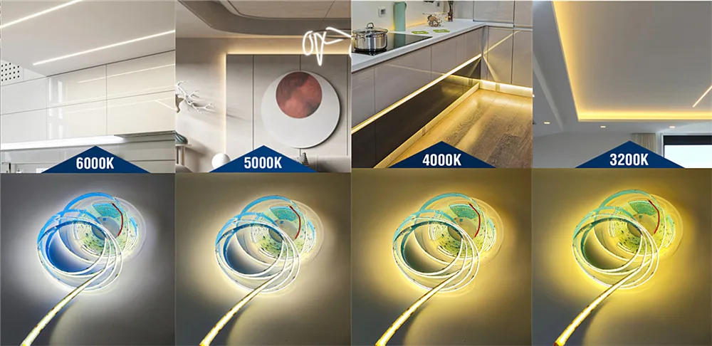 12 В 24 В постоянного тока CCT 3000K-6000K COB светодиодная полоса ...