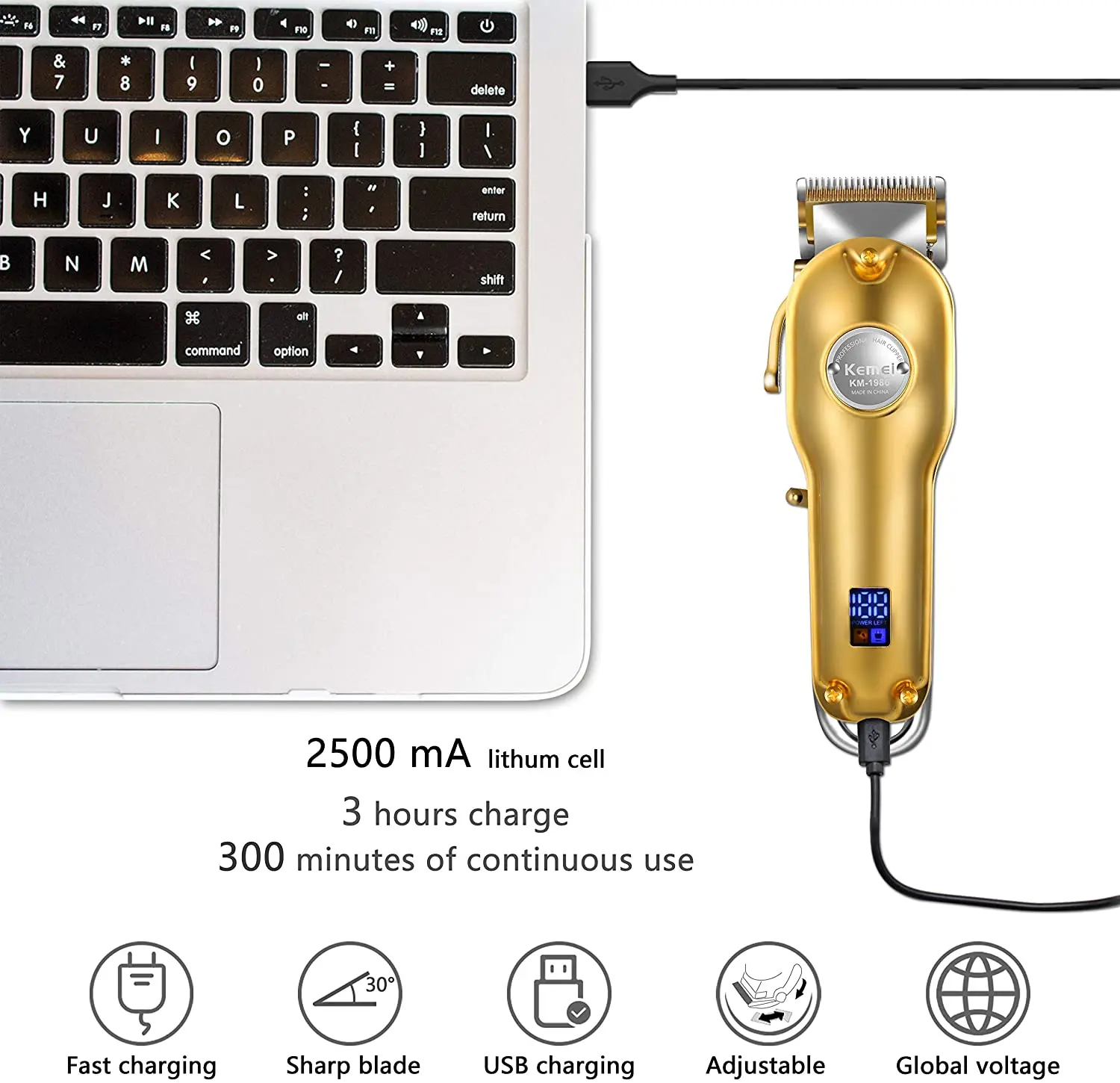 Машинка для стрижки волос аккумуляторная, со светодиодным дисплеем