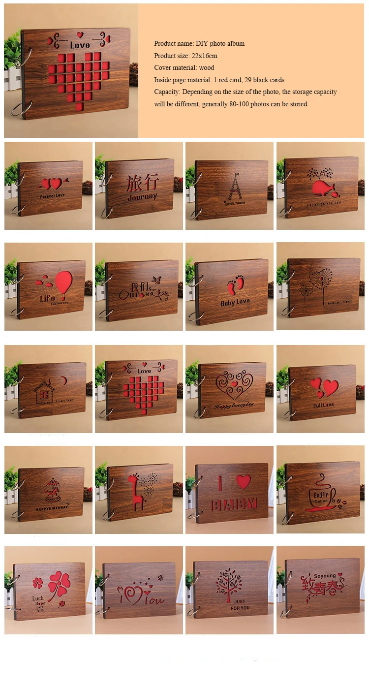 22x16 см креативный памятный фотоальбом «сделай сам», деревянная полая Обложка с 1 красным картонным 29 черным картонным фотоальбомом