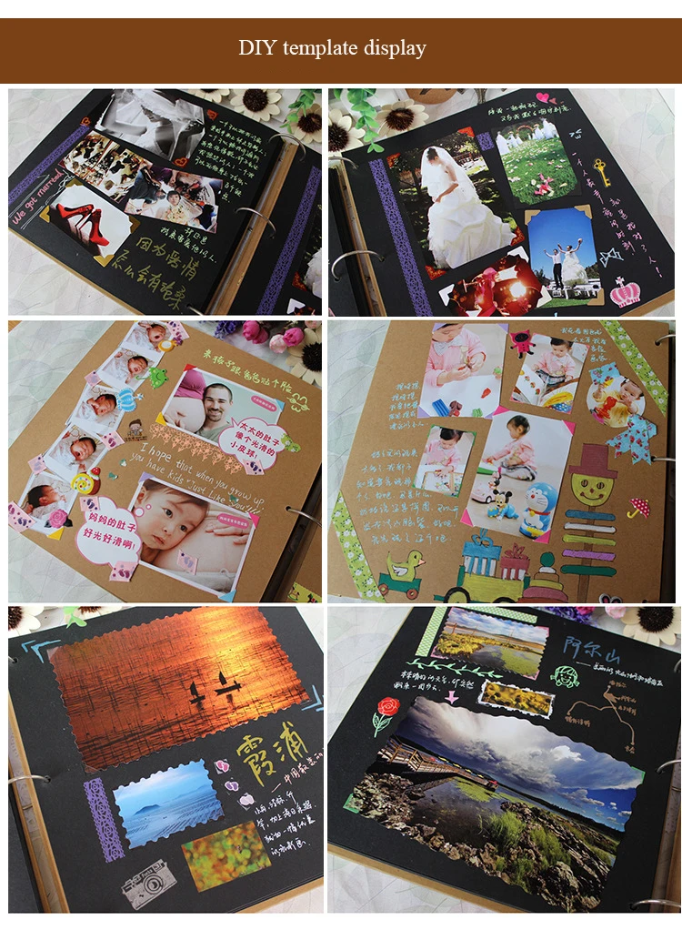 Фотоальбом "сделай сам", 22x16 см, креативный памятный, деревянный, с отверстием, содержит 1 красный картон, 29 черных картонов, фотоальбом