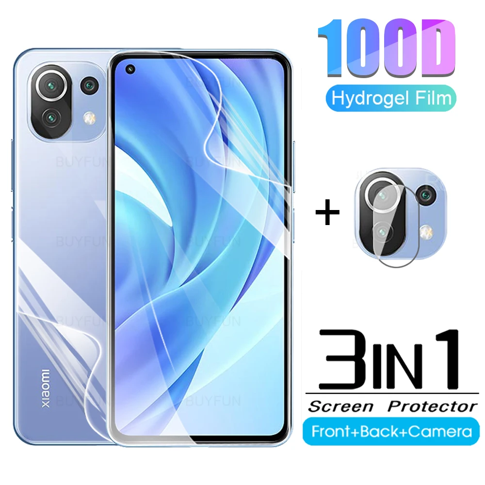 Гидрогелевая пленка 3 в 1 с полным покрытием для объектива камеры Xiaomi Mi 11 Lite, Защитная пленка для экрана Xiomi Xaomi Mi 11 Lite