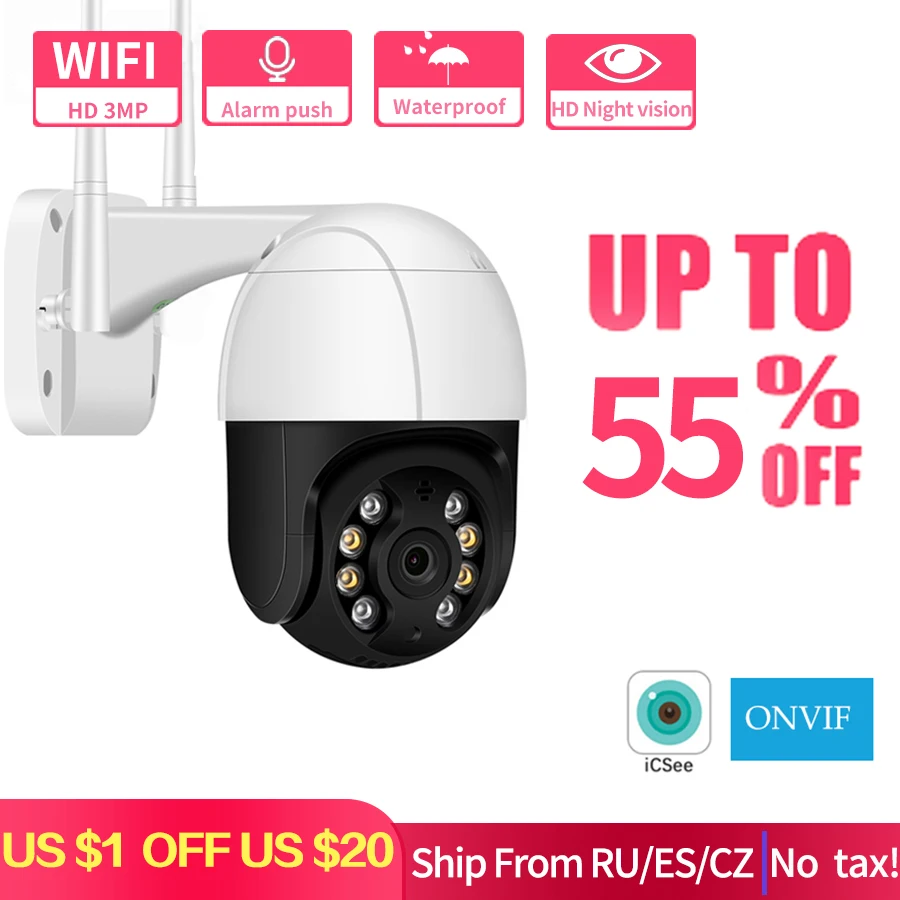 Наружная IP-камера ПНН с Wi-Fi, 3 Мп, 4-кратный цифровой зум, ИИ-датчик, Беспроводная сетевая камера видеонаблюдения с записью звука, ONVIF, ICSEE