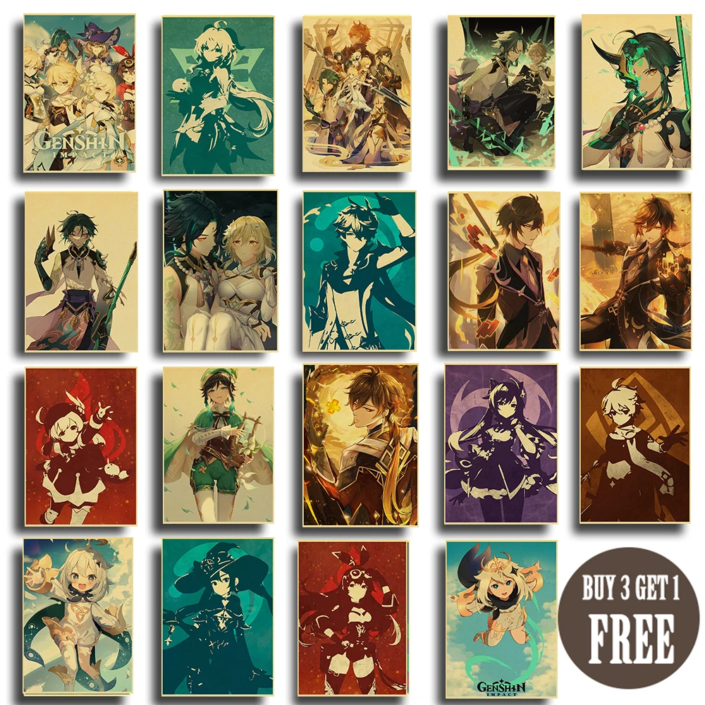 Постер с серией воздействия Genshin, HD постеры с играми из крафт-бумаги, живопись, домашний декор, Настенная картина для спальни, Сексуальная аниме-девушка постер