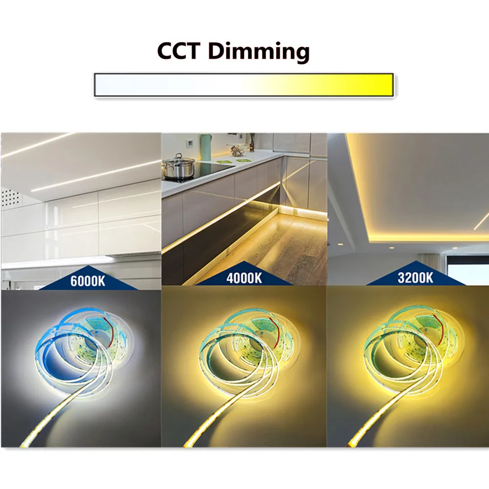 Светодиодная лента COB CCT высокой плотности, 576 Светодиодный, 10 ...
