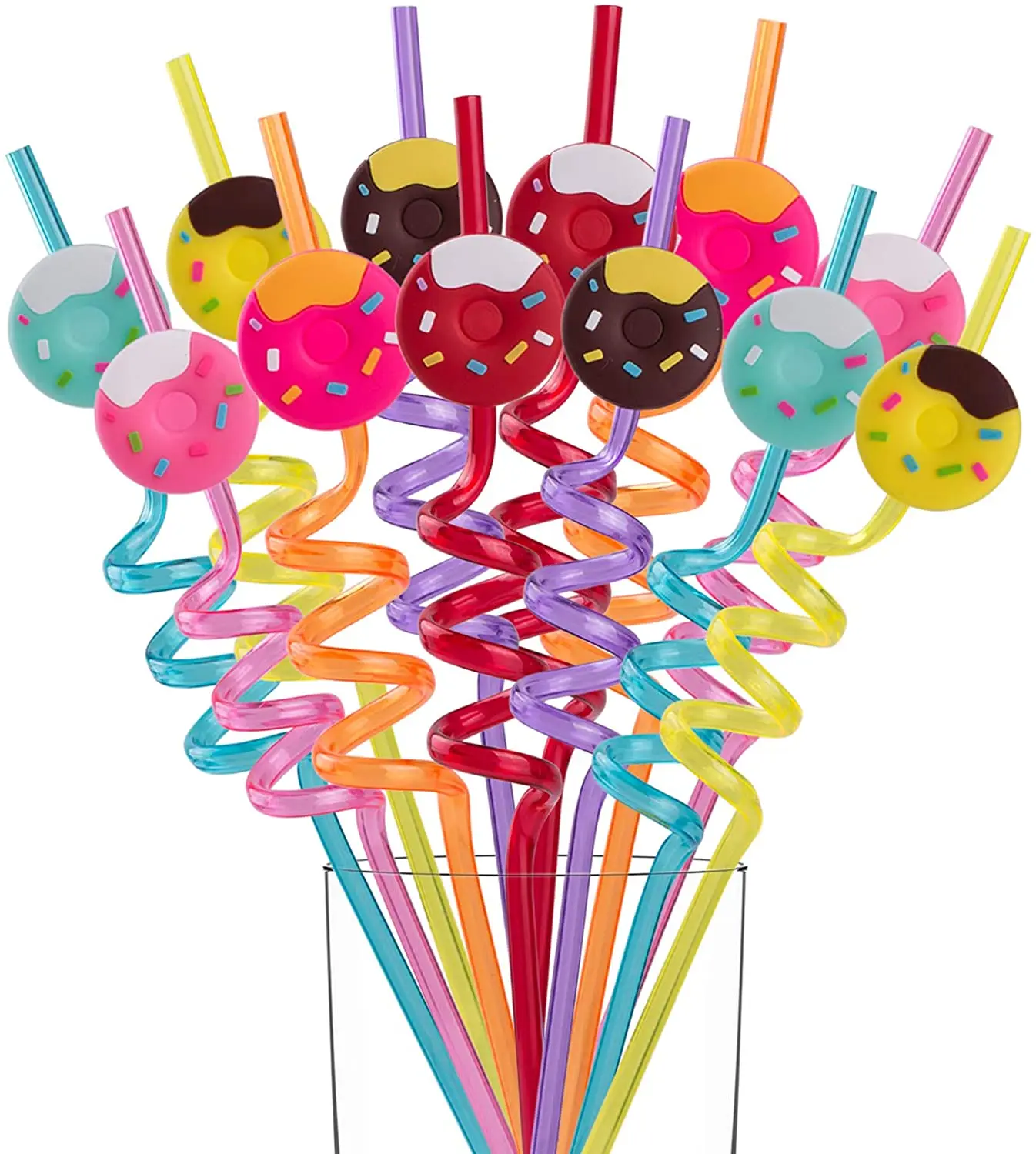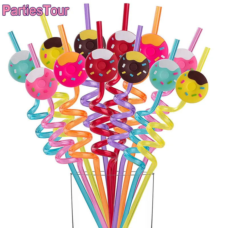 Многоразовые соломинки-пончики 8х для детей, принадлежности для детского праздника, дня рождения, пластиковые соломинки для питья