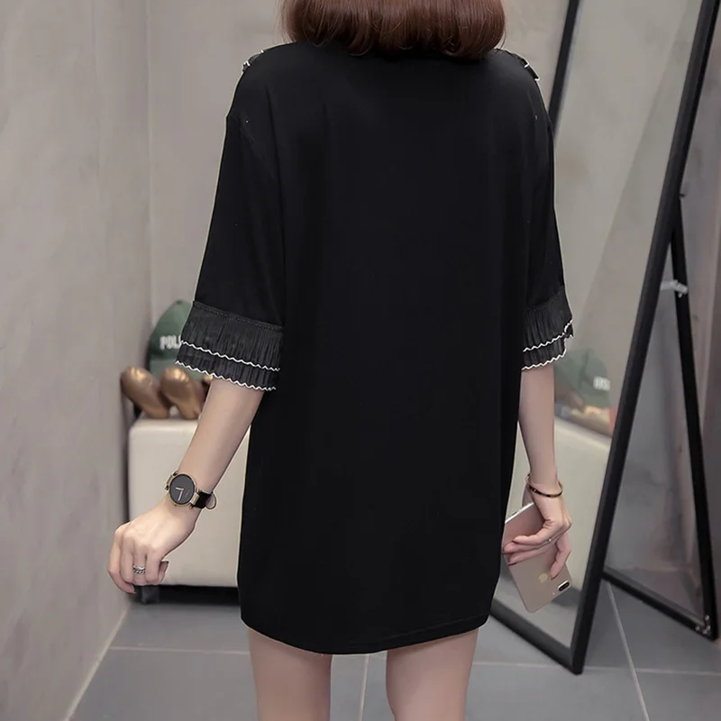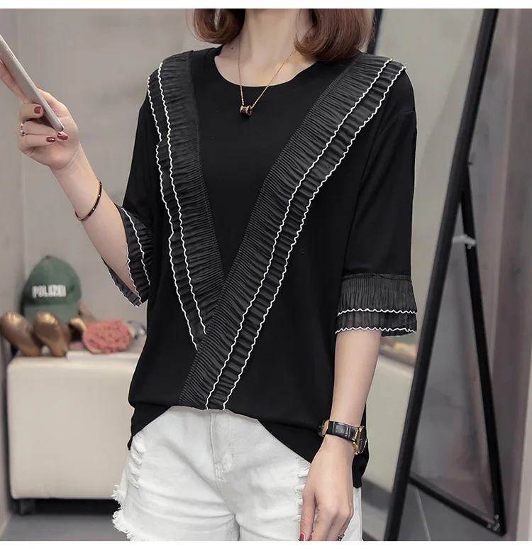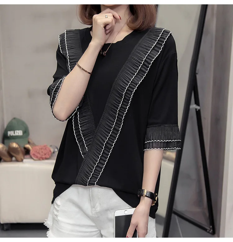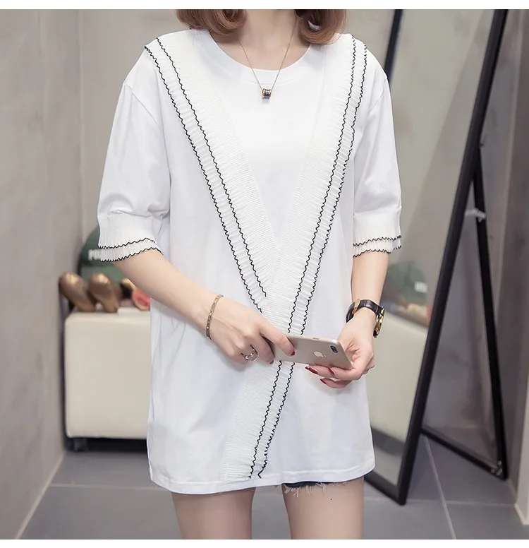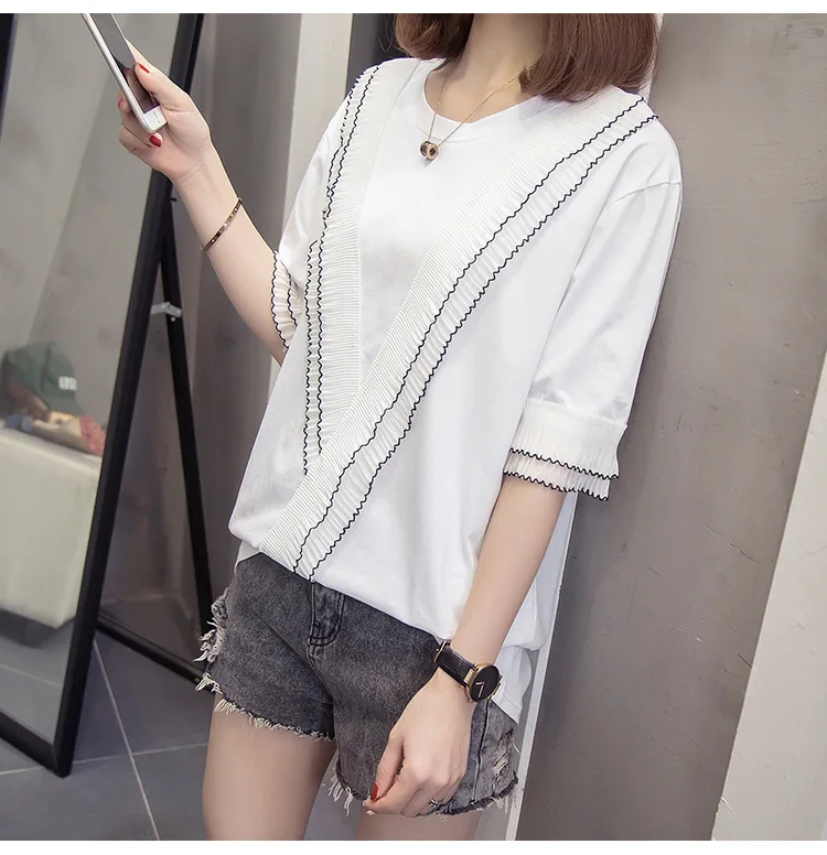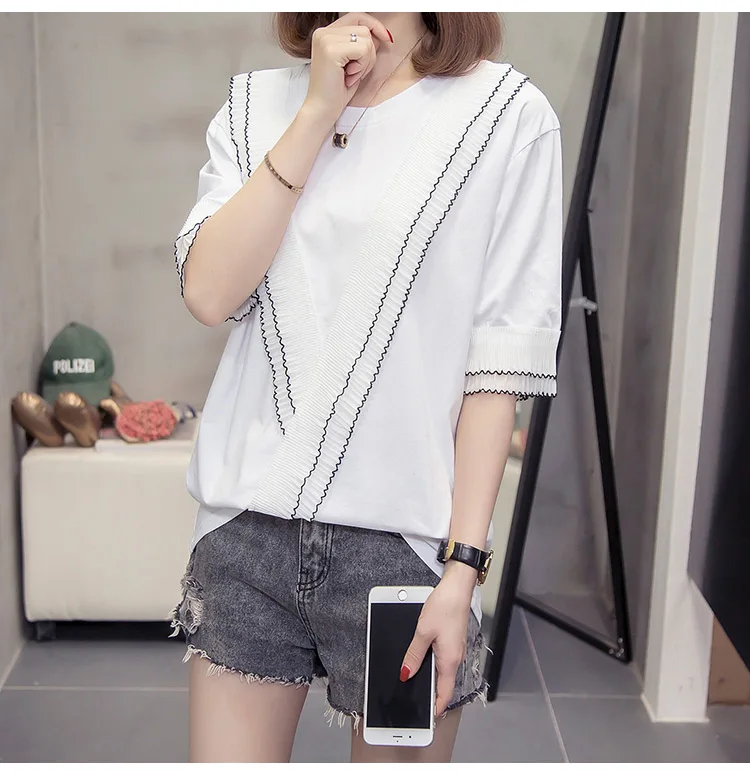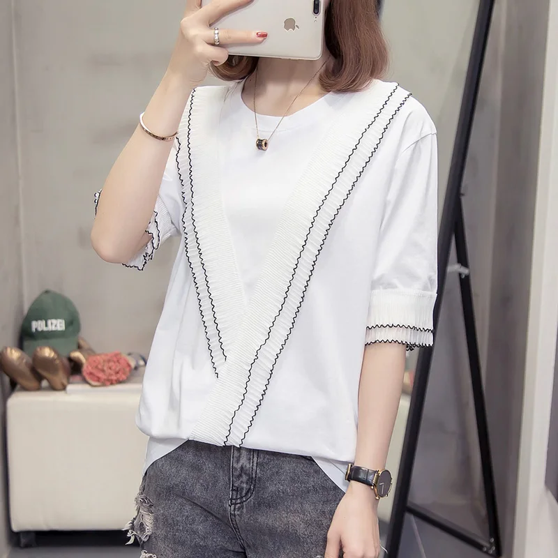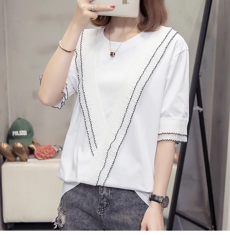Лето 2021 г. Новая мода в корейском стиле, шифоновая футболка с короткими рукавами и вышивкой, женская повседневная свободная индивидуальность, плиссированные женские топы