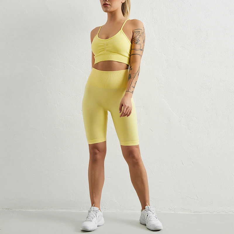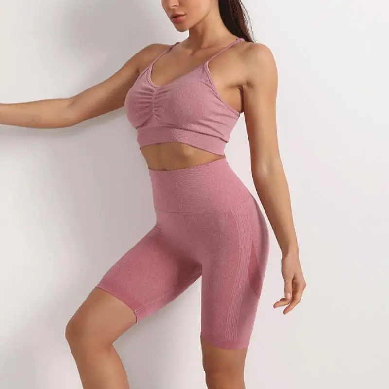 Комплект спортивный женский бесшовный из бюстгальтера и шортов, 2 шт.