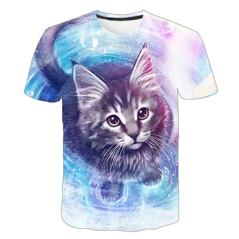 Летняя одежда, крутая футболка для мальчиков и девочек, футболка с 3d рисунком кошки и животных, индивидуальная Детская футболка с коротким рукавом для мальчиков и девочек, одежда
