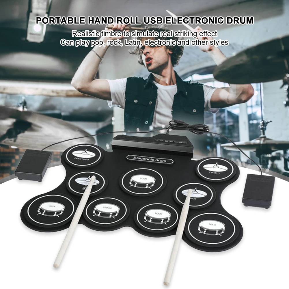 USB Перезаряжаемый рулонный портативный барабан для начинающих