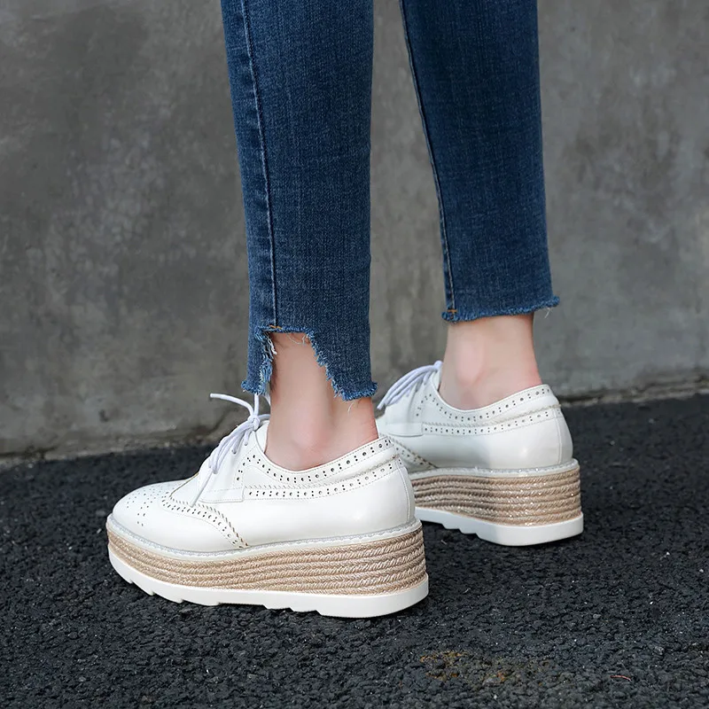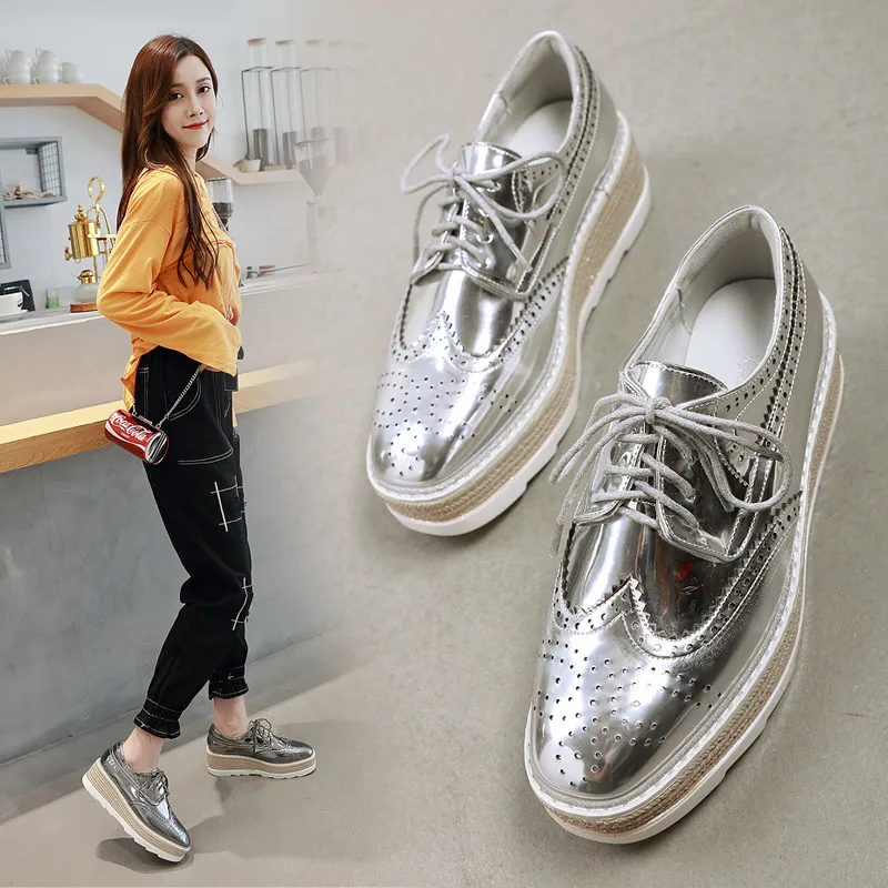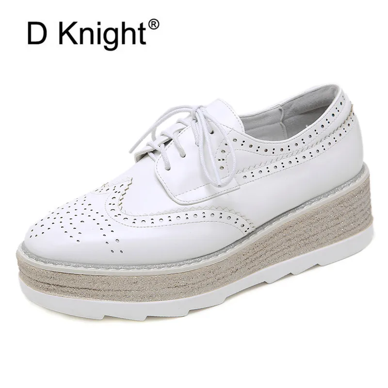 Оксфорды на платформе для женщин, толстая подошва, броги, на танкет...