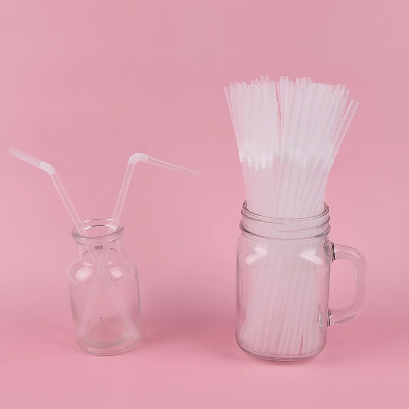 100 шт. изогнутые одноразовые соломинки, гибкие пластиковые соломин...