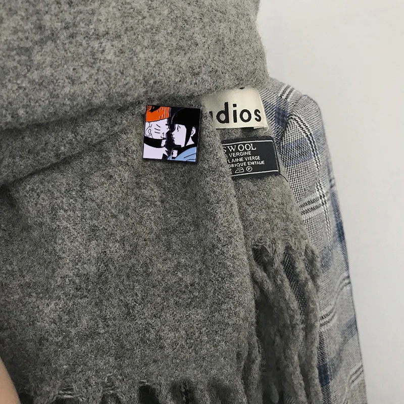 Брошь с лицом к лицу Hinata Narutos Shippuden Ninja аниме для мальчиков и девочек, квадратный значок для пар, милая заколка на лацкан