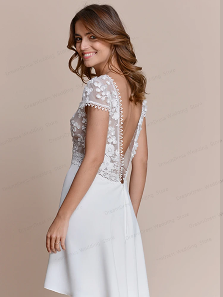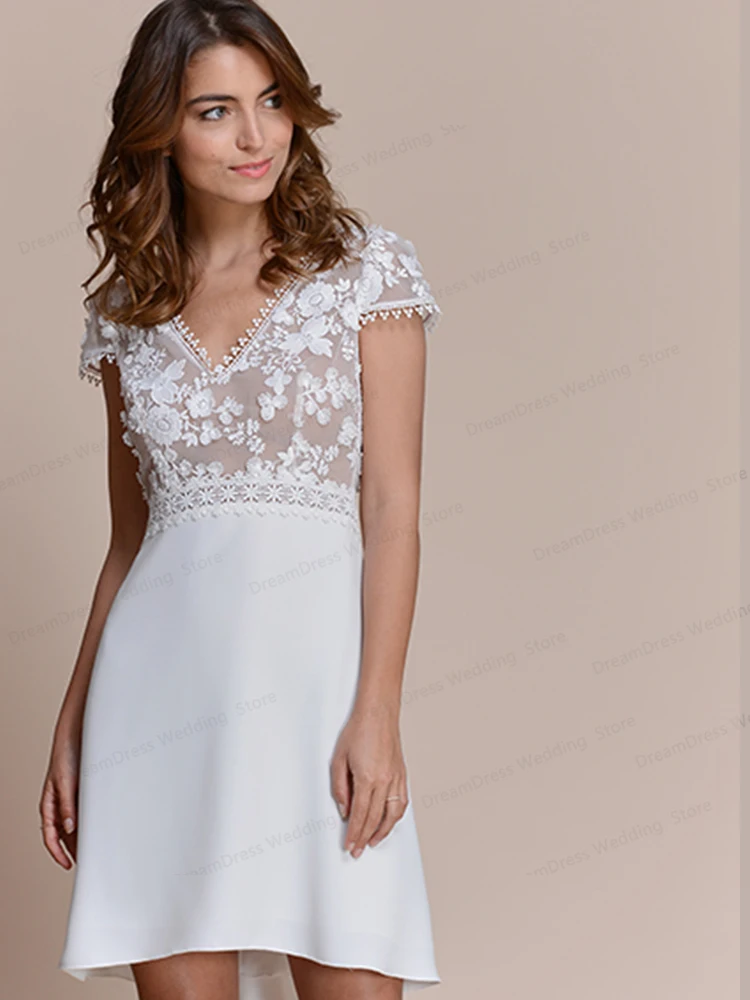 Винтажное Новое Короткое свадебное платье с открытой спиной длиной до колена, женское платье, женское платье 2021, пикантное белое свадебное платье с V-образным вырезом