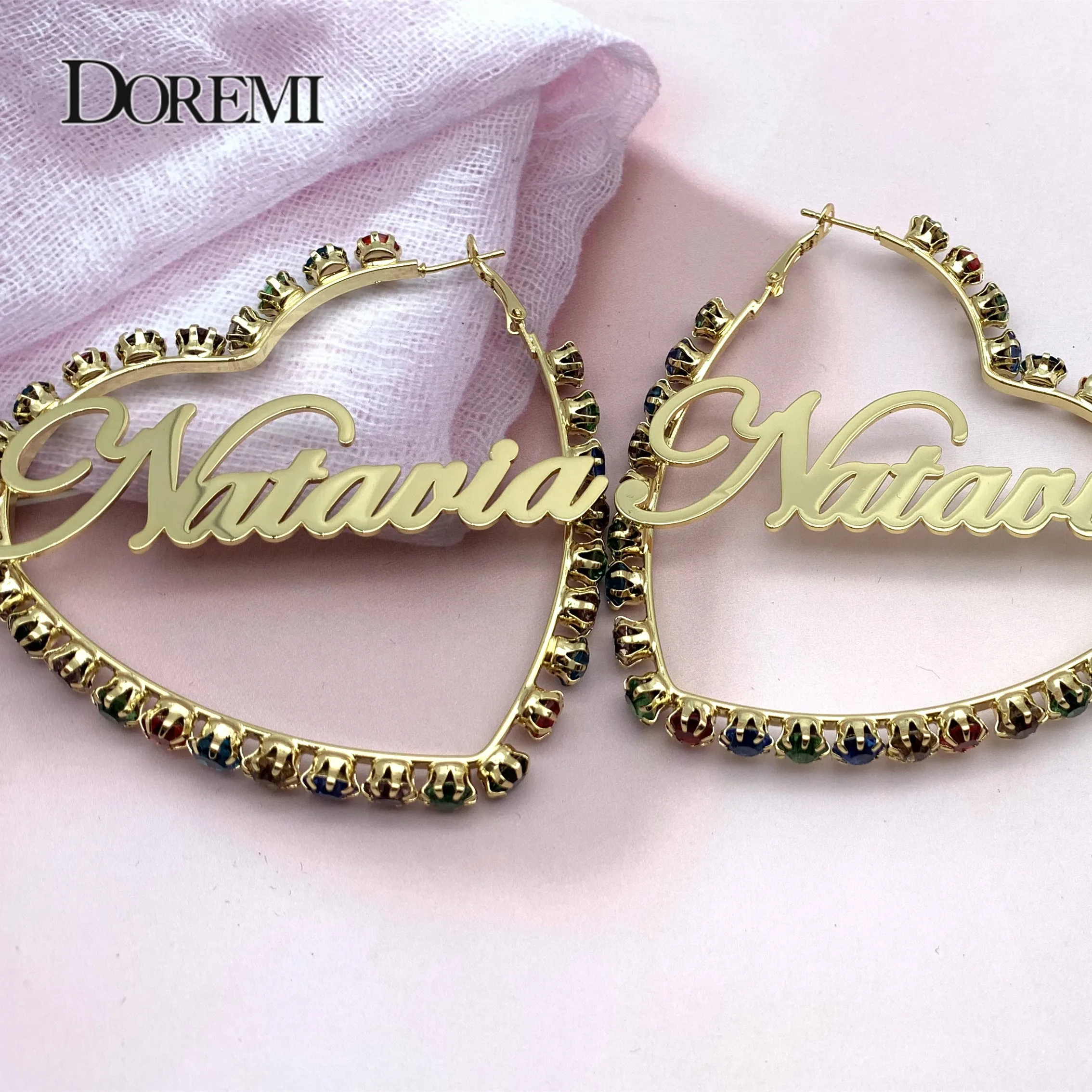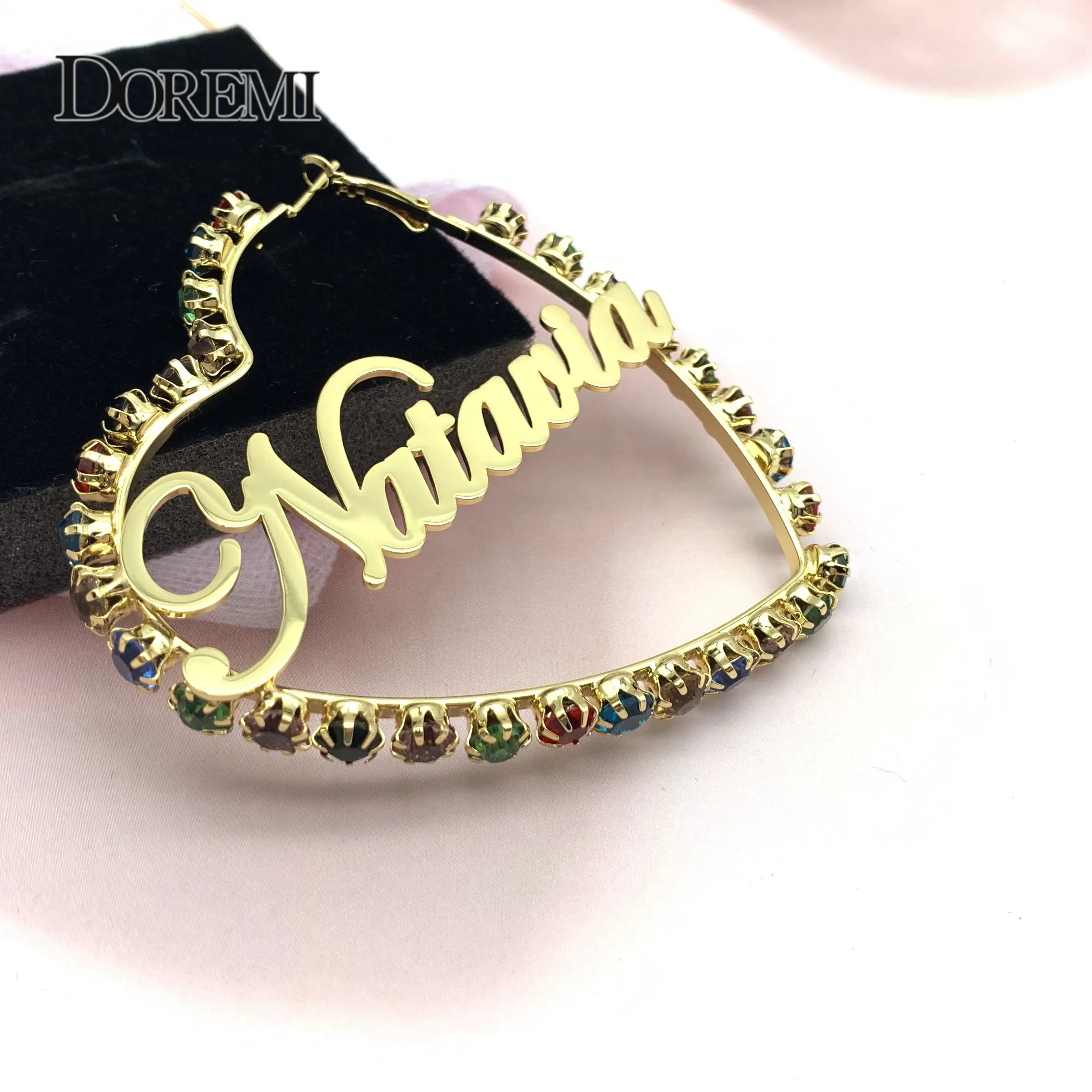 DOREMI Цвет Фул Пользовательские Бамбук Имя Серьги блеск Цвет стике...