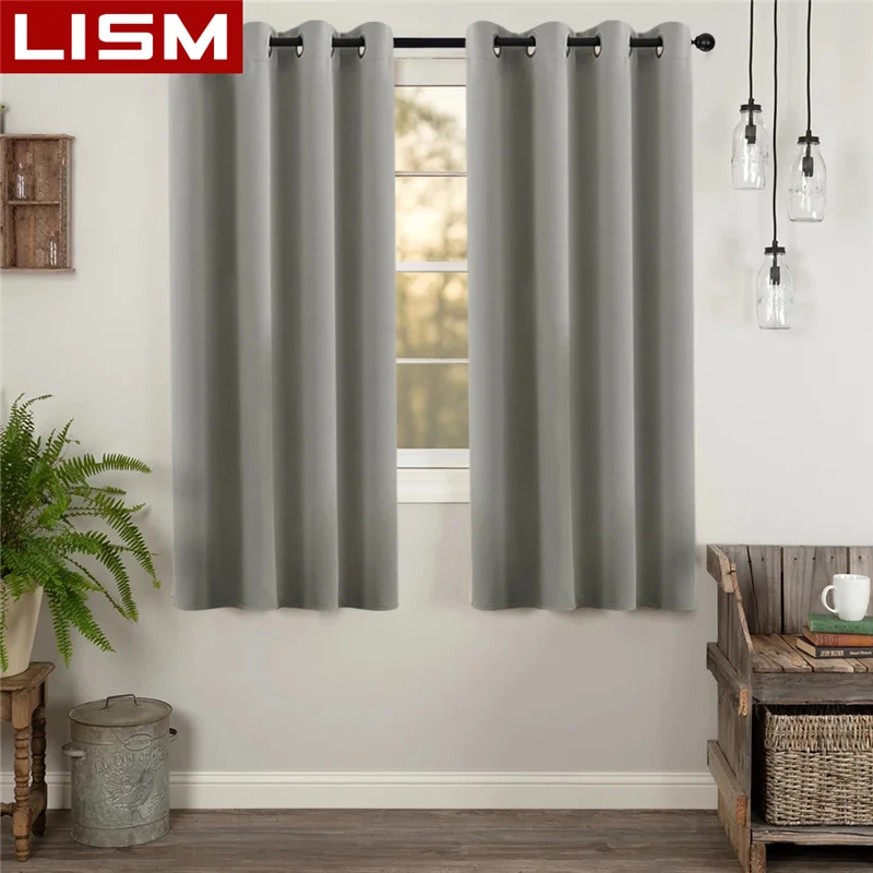 Шторы светонепроницаемые однотонные LISM, Короткие драпированные занавески для гостиной