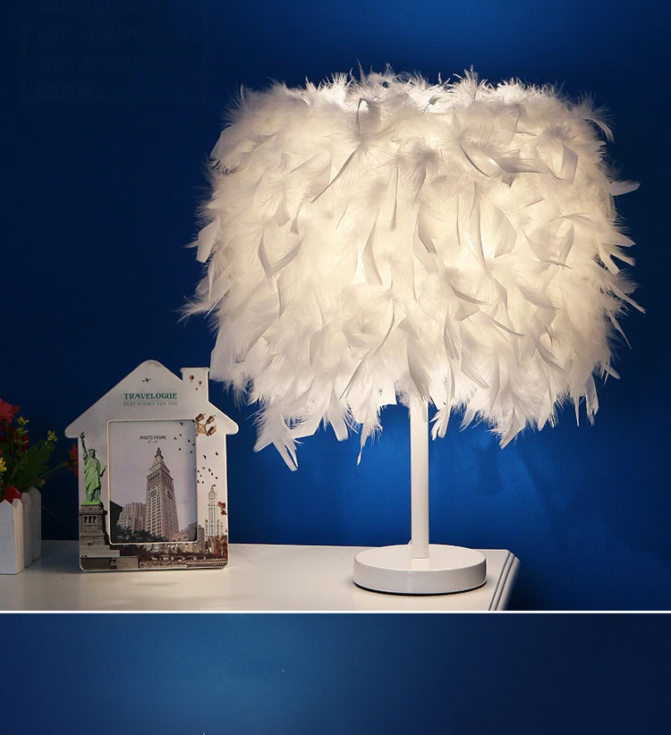 Современная креативная лампа с пером E27, настольная лампа для малышей, детской спальни, декоративное освещение, маленький размер