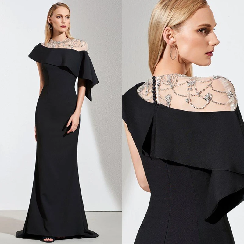 Черные мусульманские Вечерние платья 2022 Русалка с открытыми плечами женское длинное платье для выпускного вечера исламский Дубай Саудовский арабский