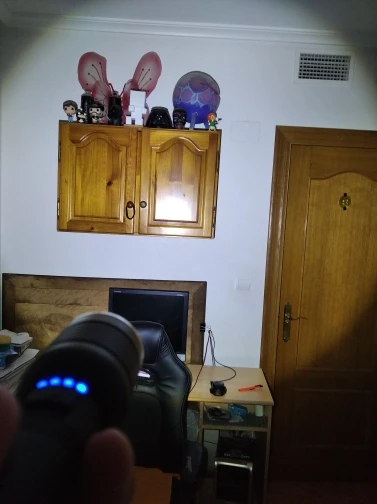 Продукт прибыл быстро, как описано (типоа-коробка B). Простой дизайн приятный, 4 синих СВЕТОДИОДА должны указывать уровень заряда батареи, это здорово. Он очень хорошо освещает. Прилагаемые фотографии были сделаны в темной комнате, фонарик имеет 3 разных интенсивности освещения, я сделал больше фотографий, но они не очень хорошо ценятся. Мне очень понравилось. Большое спасибо!