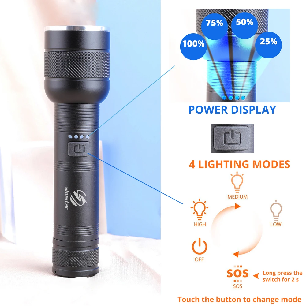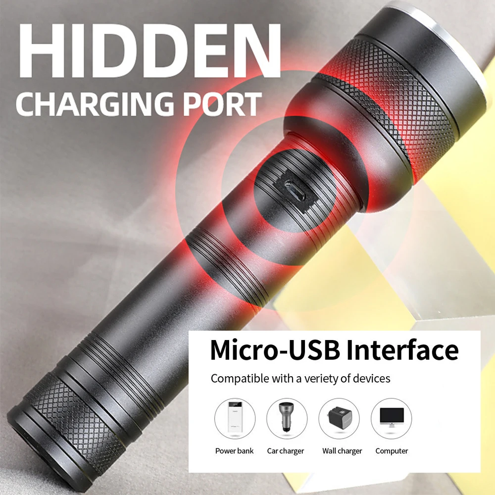 Суперъяркий светодиодный фонарик с 4 ядрами P50, водонепроницаемый фонарь с фокусировкой, подходит для приключений, кемпинга, езды на велосипеде и т. д.