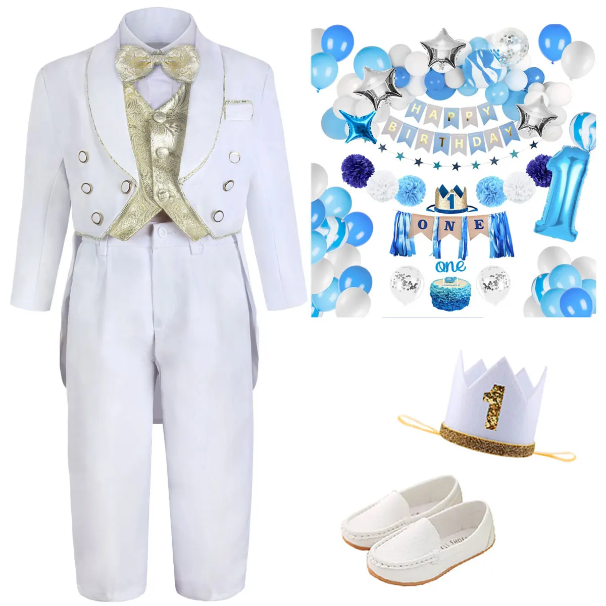 Для маленьких мальчиков платье для крещения костюм-смокинг для маленьких Свадебная вечеринка церемонии крещения детей с года до трех лет и комплект формальная одежда для джентльмена из жаккардовой ткани с