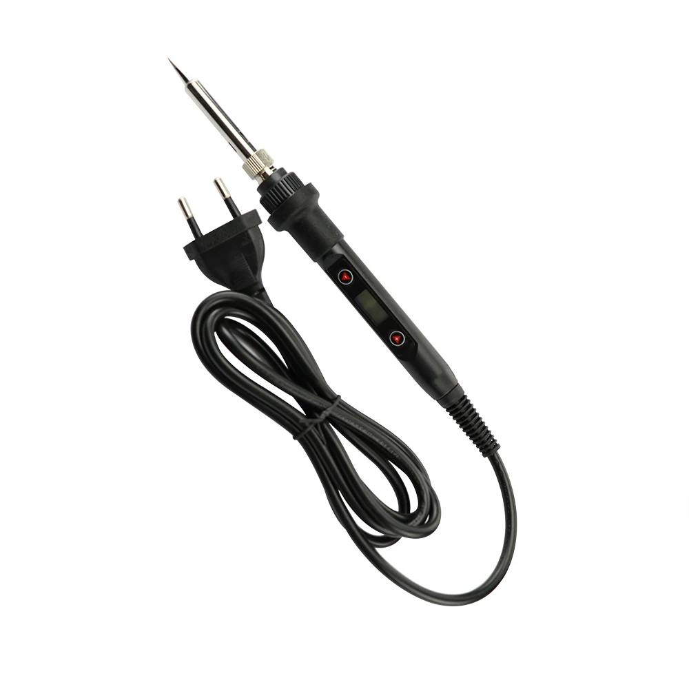 Он изготовлен из металлического наконечника и нержавеющей стали, обеспечивает качество продукции и свойства стабильности и надежности. Паяльник с регулируемой температурой s: 200-450 градусов по Цельсию, есть специальная схема термостата для контроля температуры, и вы можете регулировать температуру в соответствии с вашими потребностями колесом ручки на электронном паяльникеЭтот паяльник может быть применен при сварке паяльником с наконечниками и резьбой, пирографией, выбиванием дерева, сжиганием с резьбовыми наконечниками.