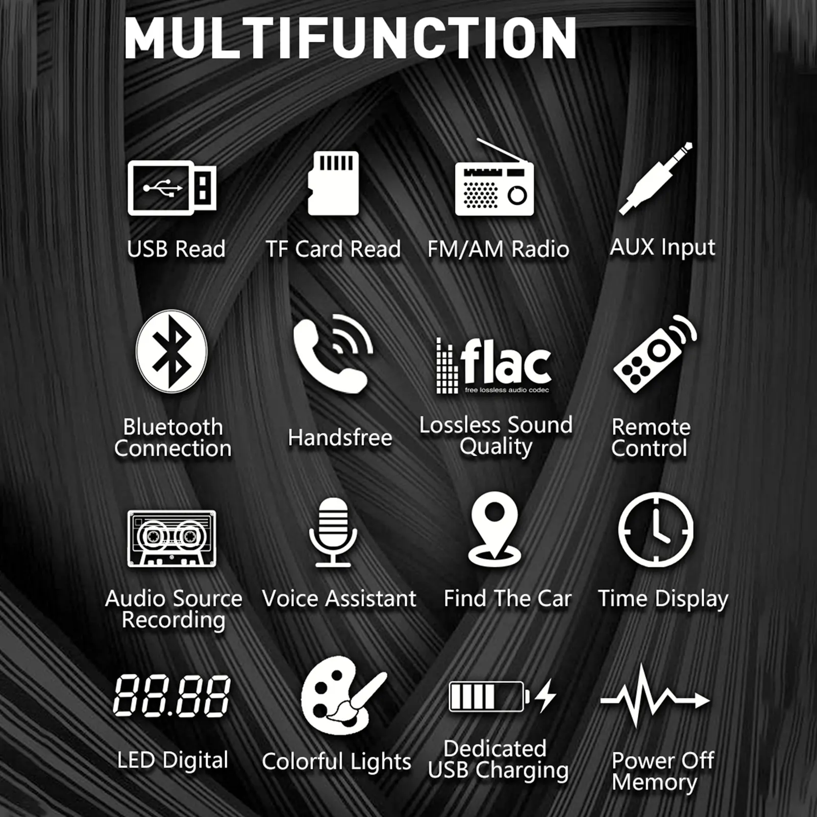 Особенности:1. Bluetooth для воспроизведения музыки Bluetooth для совершения и приема звонков и функции AUX.2. Цифровое высококачественное стерео радио FM/AM.3. Поддержка кардридера и U-диска (аудио).4. Поддержка аудио: MP3/WMA/WAV/FLAC.5. Аудиовыход RCA можно подключить к сабвуферу.6. Красочные крутые огни.7. Функция копирования звука, поддержка записи с источника звука, вы можете напрямую Копировать радио-трансляцию, музыку AUX и музыку Bluetooth на диск U.8. Поддержка Мобильный телефон местоположения приложения и функции поиска автомобиля, Голосовое управление мобильный телефон голосового помощника.Характеристики:Тип: автомобильный стерео MP3-плеерСпециальные функции: FM /AM радио, Bluetooth, громкие звонки, mp3-плеер, AUX, Двойная зарядка через USB,Модель: SWM-80AНапряжение: 12 ВОС: нетПрограммное решение: SWT6D801Чип усилителя: TDA7388Тип экрана светодиодный светодиодная цифровая трубка + Частотный экранРазмер панели (около): 188*58 мм/7,40*2,28"Светильник панели: цветной светильникРазмер коробки (около): 220*82*181 мм/8,66*3,23*7,13"Глубина хоста: 60 ммВес одной машины (около): 418 гРадиодиапазон: FM 87,5 ~ 108 МГц/A522 ~ 1620 кГцРадиочип: ZT0811Мощность: 4*60 ВтSNR (дБ): ≥ 60 дБСтепень искажения (%): ≤ 0.3%Чувствительность: менее 20 дБСтерео разделение: более 25 дБРабочая температура: -10 ~ 60 ° CМодель Bluetooth: AUTO BTВерсия Bluetooth: 4,0Слот для карты TF: ДаПульт дистанционного управления: ПоддержкаИнтерфейс и Версия USB: USB2.0Кнопка: Физическая кнопкаВведение в Терминал RCA: 4-канальный аудиовыходАудиовход AUX: ДаПоддерживаемые Аудиоформаты: MP3 / WMA / WAV / FLACУпаковочный лист:1 mp3-плеер1 шнур питания1 х кабель динамика2 x ключ для снятия1 х пульт дистанционного управления1 х РуководствоПримечания:1. Это устройство 12 В, а не источник питания 24 В.2. Возможны небольшие погрешности в размере из-за ручного измерения, различных методов и приборов измерения.3. Цвет, изображенный на фотографиях, не совпадает с реальным цветом изделия из-за разного светильник, углов и мониторов.
