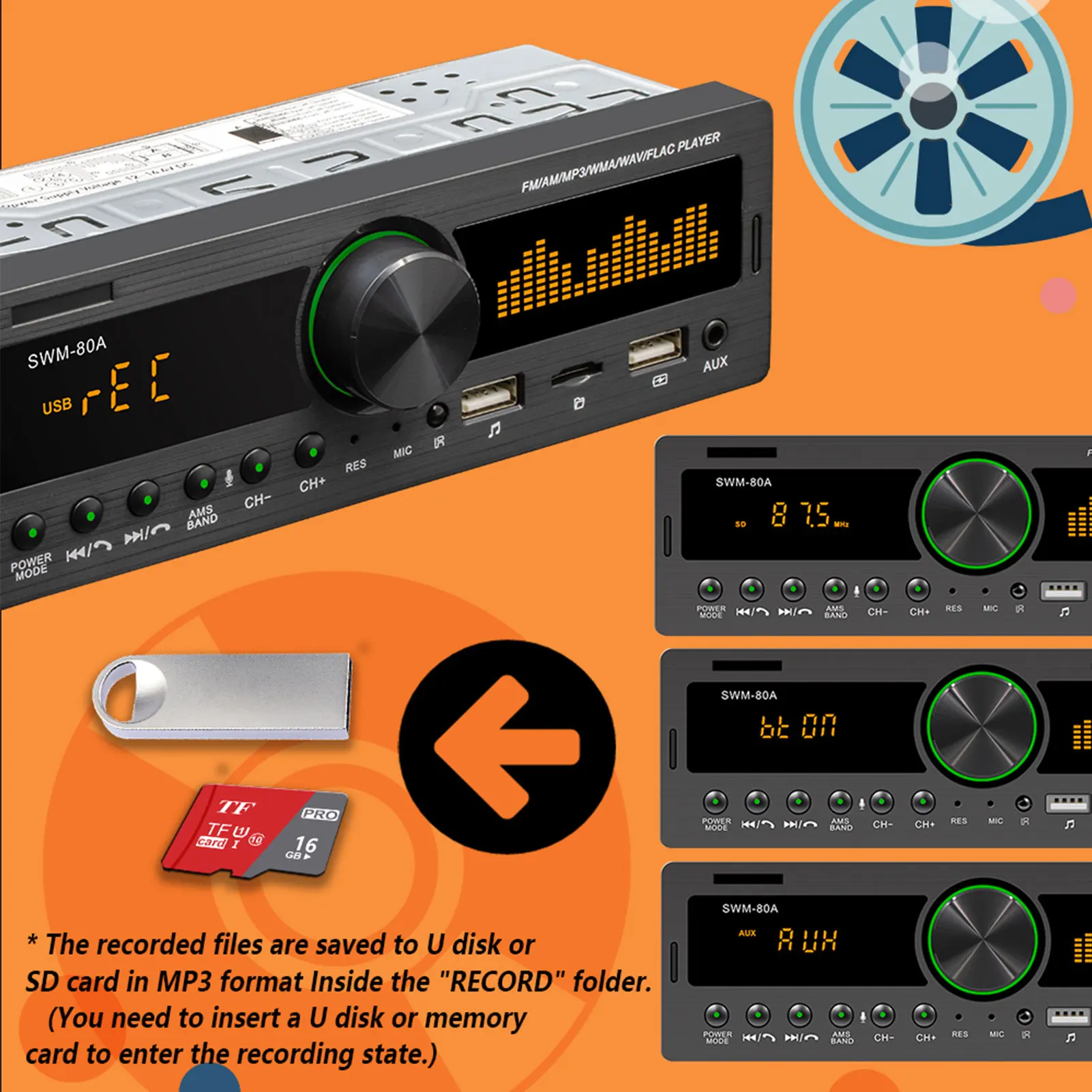 Автомагнитола 1 DIN, SWM-80A г., с двумя USB-портами для зарядки, mp3-плеер, аудиоплеер, Bluetooth, TF, USB, AUX-вход, автомобильный стереоплеер