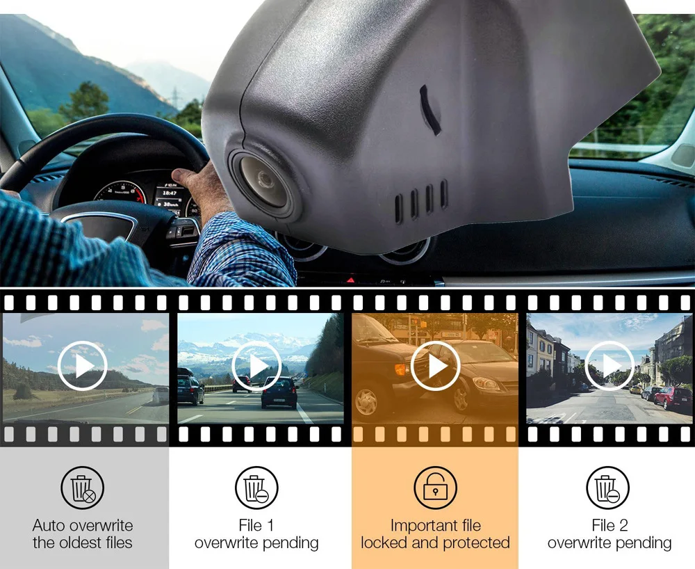CVW09 Скрытая WI-FI 1080P 24 часа упаковочные мониторинга Видеорегистраторы для автомобилей Dash CamVolkswagen