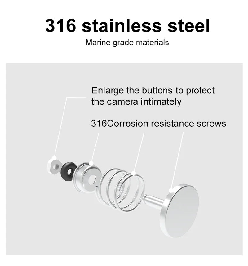 1. Перемещение водной линии от объектива позволяет одновременно снимать изображения как выше, так и под водой.2. Простота в эксплуатации, почти бесконечная глубина поля, широкоугольный объектив.3. Водонепроницаемый глубина до возможностью погружения на глубину до 30 м, светильник с высоким коэффициентом пропускания до 93%.4. 8 дюймов светильник-вес плавающая рукоятка w/ 1/4 Стандартный резьбовое отверстие.5. Супер-Удобная ручка TPE, отличное мягкое прикосновение, нескользящая и экономичная.6. Плавающий в воде/использование в земле7. Оснащен кнопкой спуска затвора для быстрой работы8. Рукоятку можно отвинтить, чтобы открыть полый отсек, который можно использовать для добавления воды (для достижения нейтральной плавучести под водой) или хранения мелких предметов.9. Регулируемый ремешок обеспечивает большую безопасность вашей экшн-камеры10. Противотуманные вставки предотвращают запотевание корпуса камеры. Сушить естественно, многоразовые.11.CD защита от отпечатков пальцев Дизайн: Навигация специальный материал из нержавеющей стали 316, широкая головка кнопки, Защита камеры